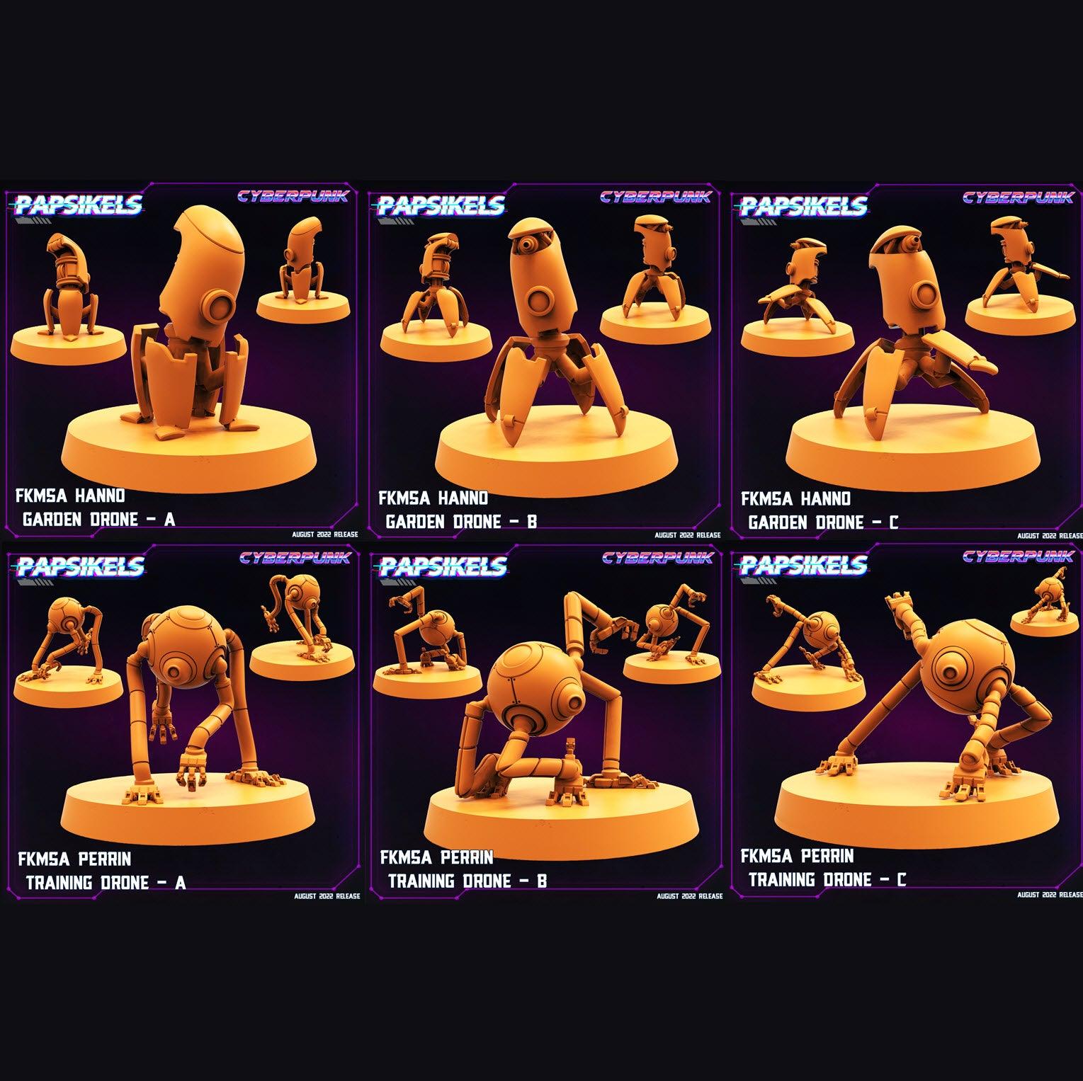3D Printed Papsikels Cyberpunk Sci-Fi Fkmsa Hanno Drone Set - 28mm 32mm (Online Only)