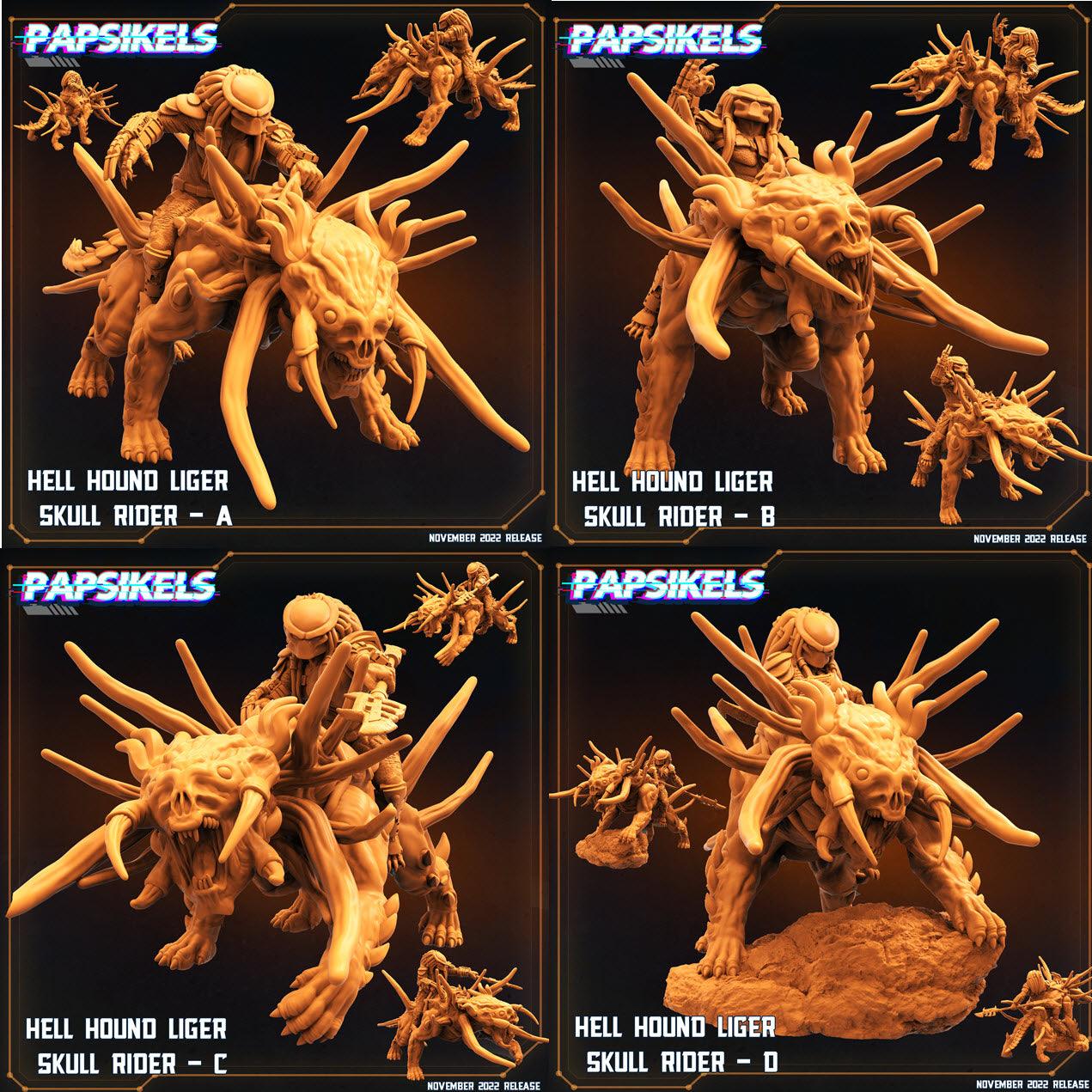 3D Printed Papsikels Cyberpunk Sci-Fi Hell Hound Liger Skull Rider Set - 28mm 32mm (Online Only)