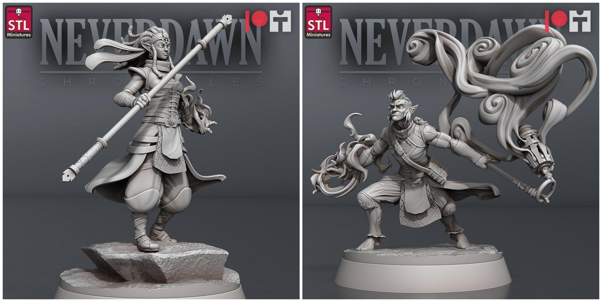 3D Printed STL Miniatures Neverdawn Pyromancers Set 28 - 32mm War Gaming D&D (Online Only)