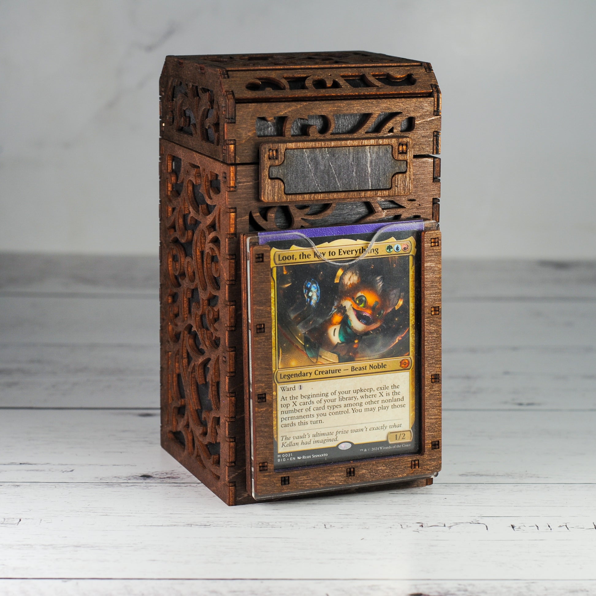 Step into the realm of elegance and functionality with our enchanted Wooden Deck Box for Magic: The Gathering aficionados! Crafted by master artisans with a touch of wizardry, this deck box isn't just storage—it's a statement.