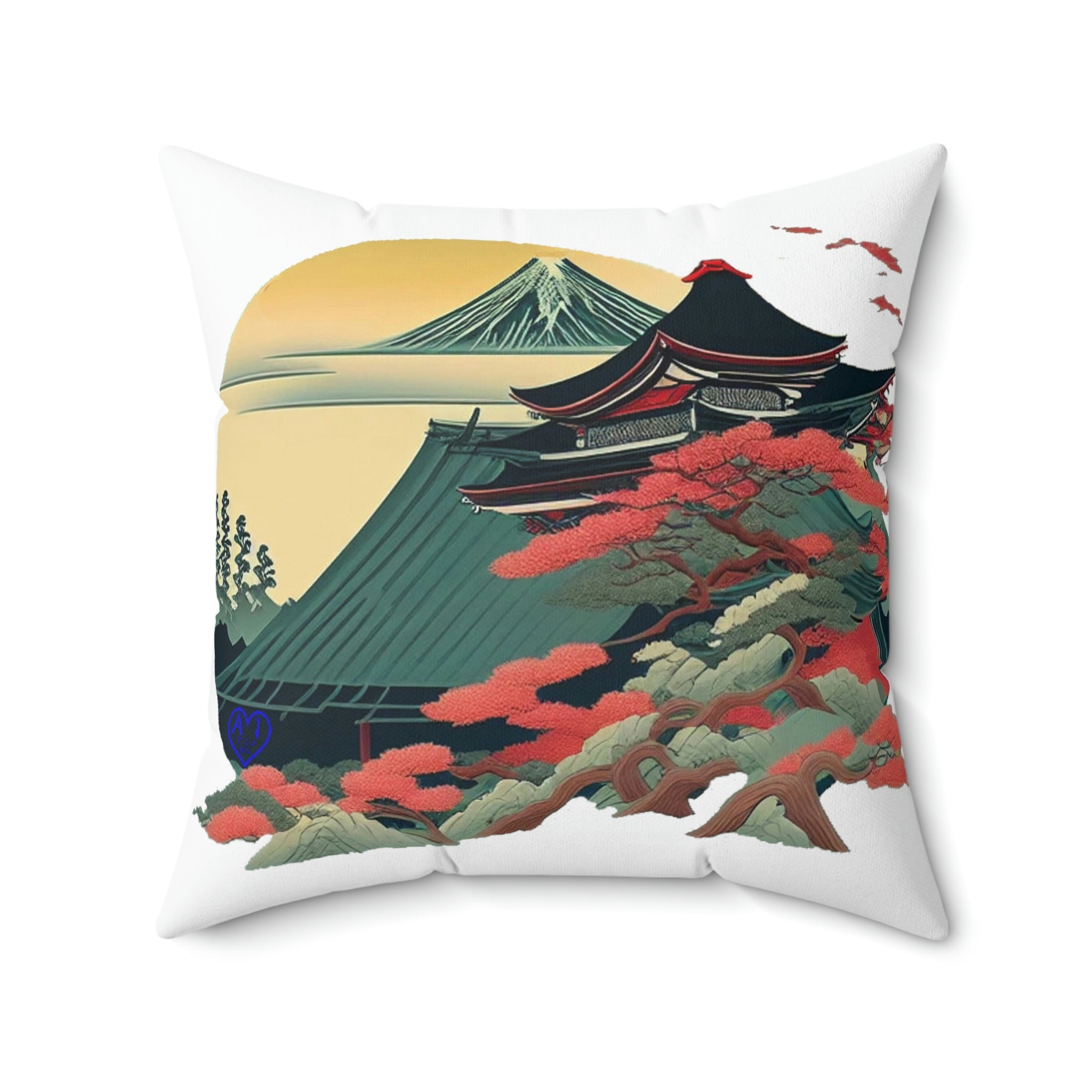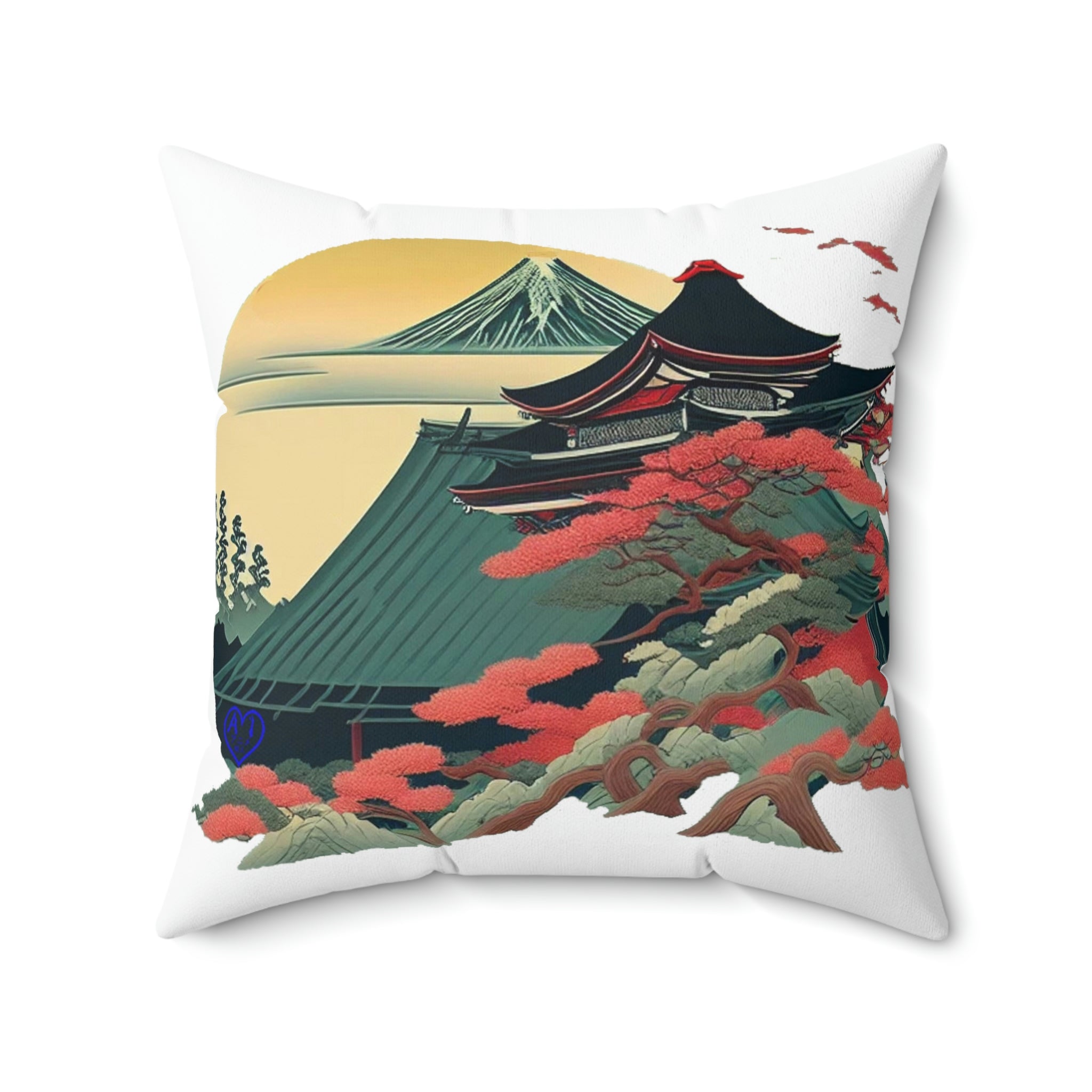 Japanese Sakura Temple Spun Polyester Square Pillow