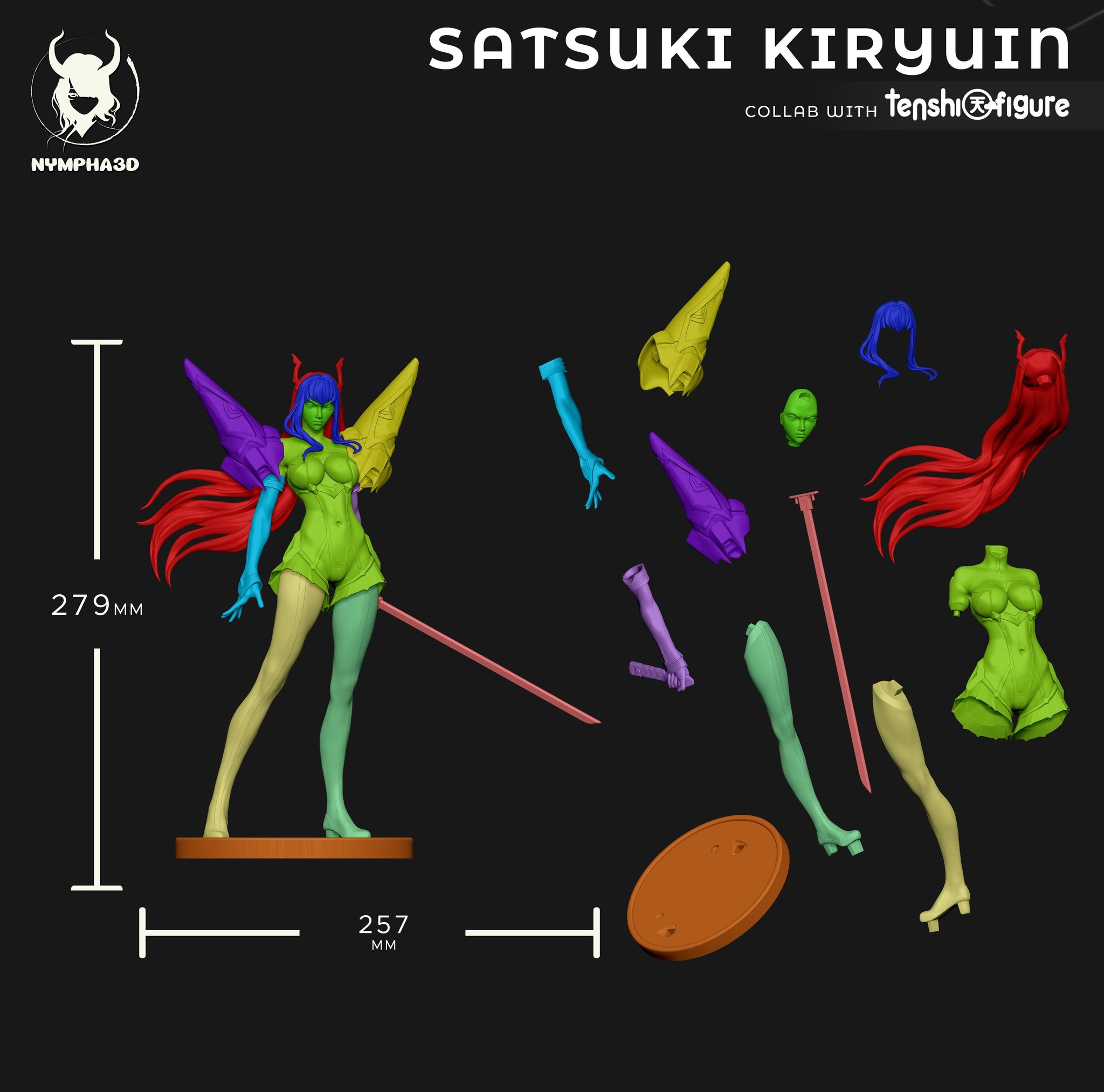 Satsuki Kiryuin commands presence in this 1:6 scale collectible by Nympha3D x TenshiFigure. Clad in her iconic Junketsu armor with flowing hair and blade drawn, this model captures her fierce beauty and confidence—an elite display piece for Kill la Kill fans and anime collectors alike.
