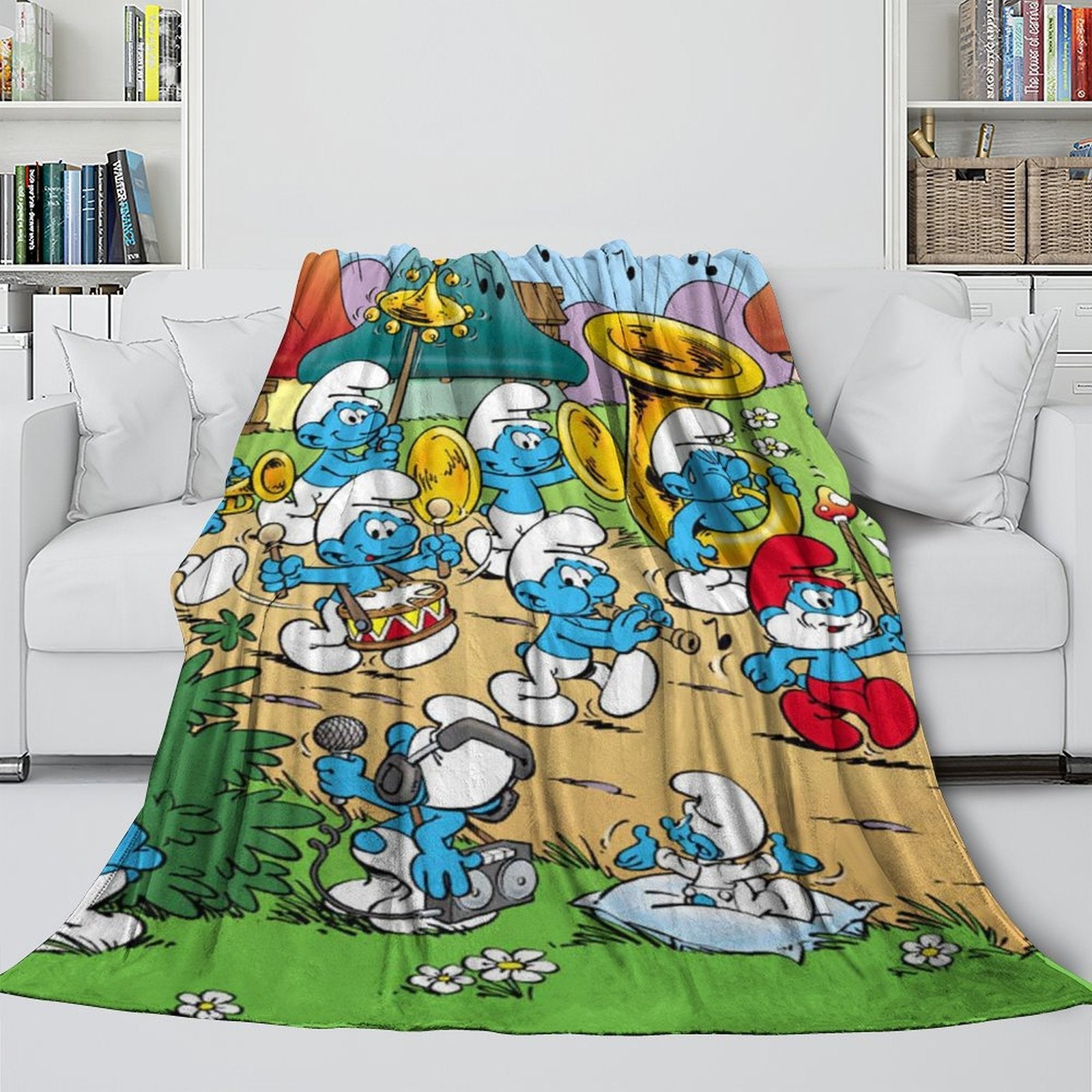 Cartoon Smurfs Blanket Flannel Throw Room Decoration (Online Order Only)