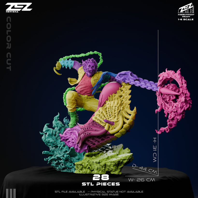Ghost Rider collectible statue and bust in 1:6 scale, featuring the flaming-skulled antihero battling a monstrous foe with his iconic chain and hook. Includes full dynamic diorama and bust design, perfect for Marvel fans and collectors of comic-inspired figures.