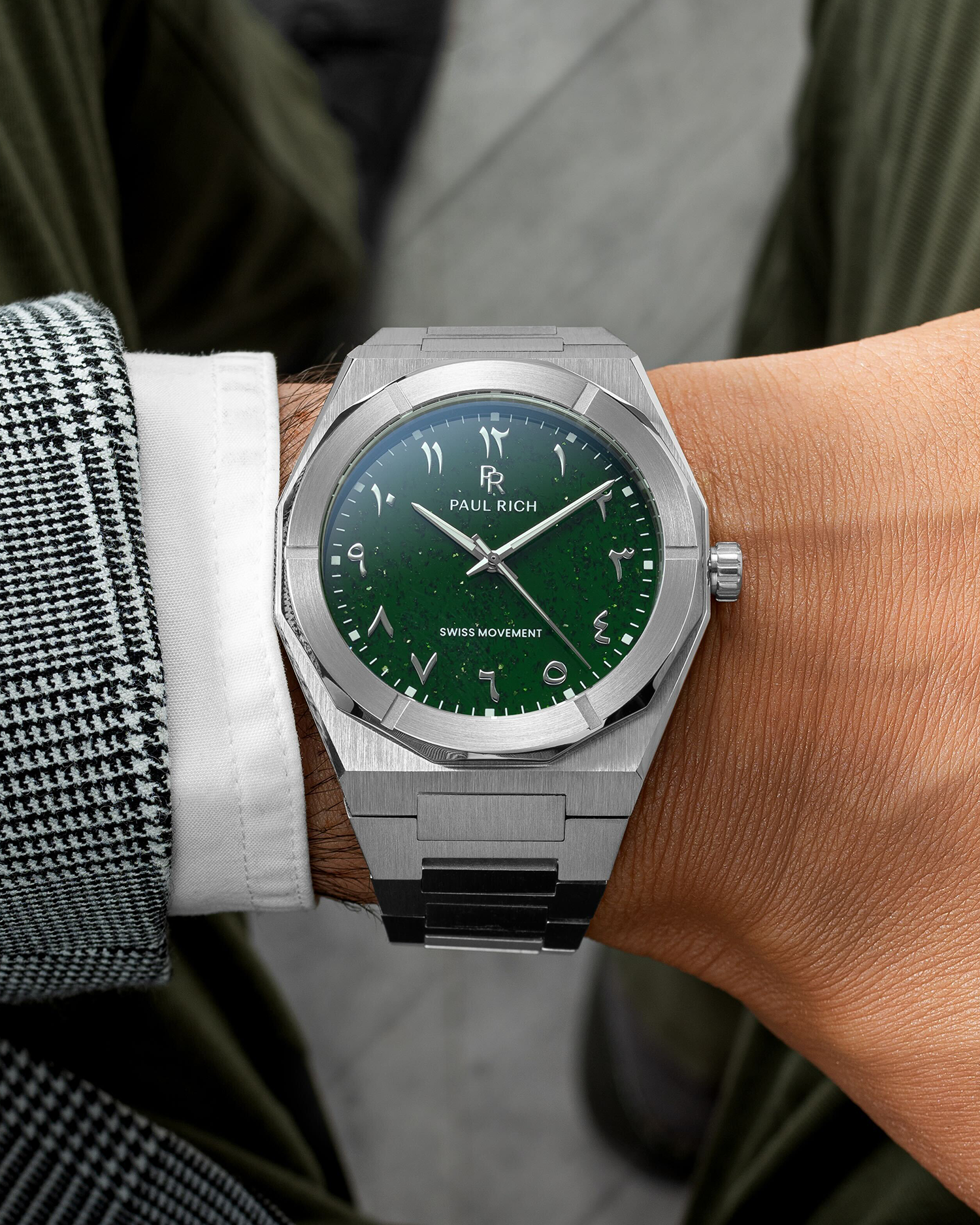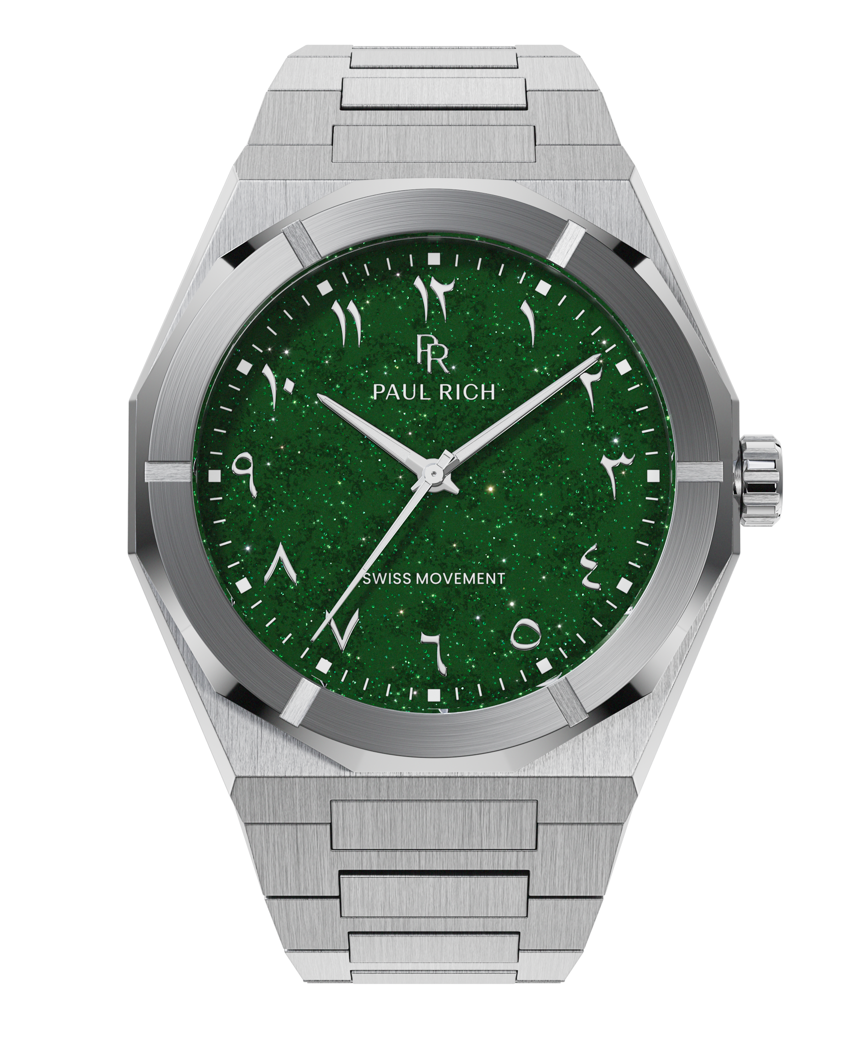 Cosmic elegance meets Arabic heritage. A galaxy dial with Arabic numerals—paying tribute to the Arabic world’s legacy in math and astronomy. Encased in stainless steel, the aventurine stone shimmers like a starlit sky. This isn’t just a timepiece; it’s a testament to history, culture, and pride. Style, legacy, and power in every detail. Wear the heritage.