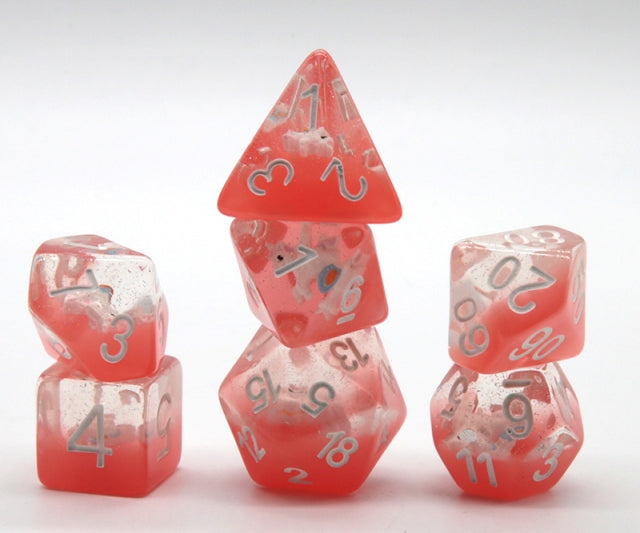 Red Nobel Unicorn Resin Glitter White Numbers 7-Dice Set Rpg