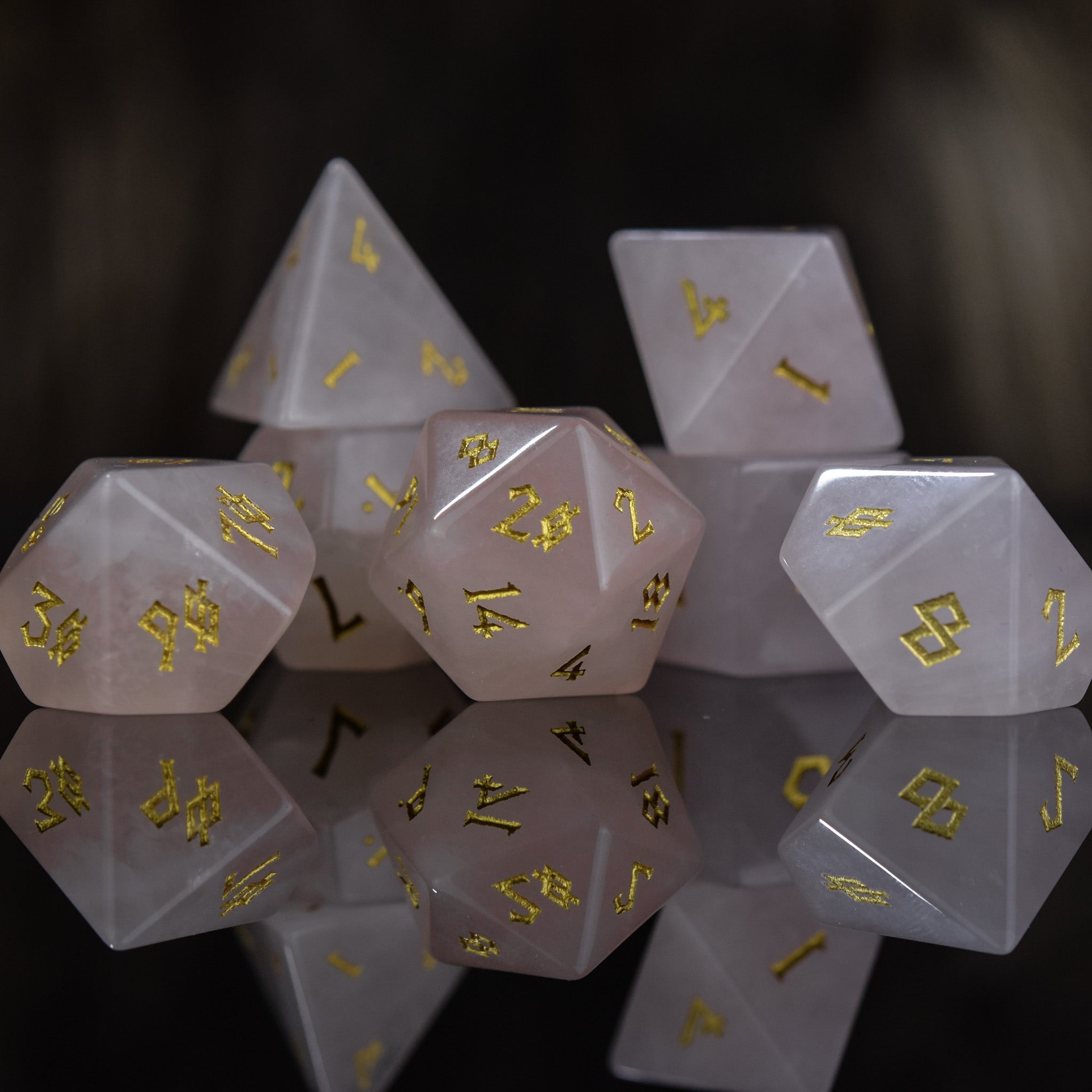 Rose Quartz Stone Dice Set (ONLINE ORDER ONLY)
