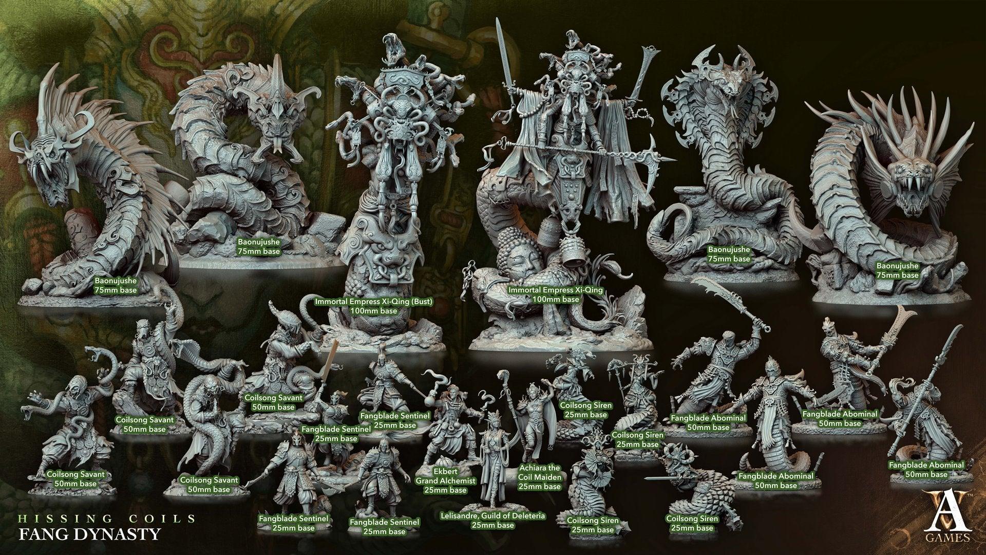 3D Printed Archvillain Games Hissing Coils - Fang Dynasty Immortal Empress Xi-Qing 28 32mm D&D (Online Only)