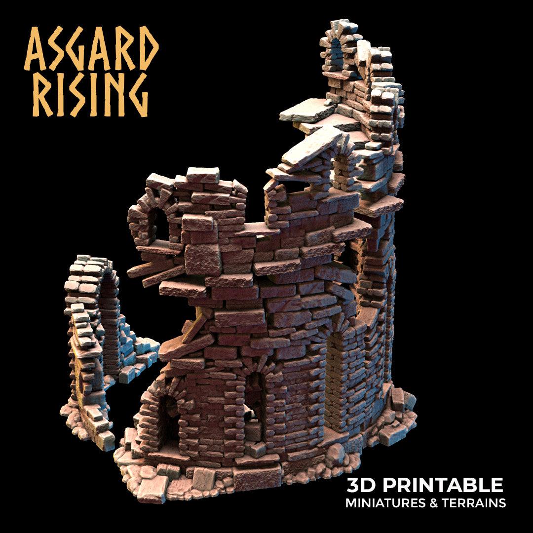 3D Printed Asgard Rising Ruined Tower - Ragnarok D&D (Online Only)