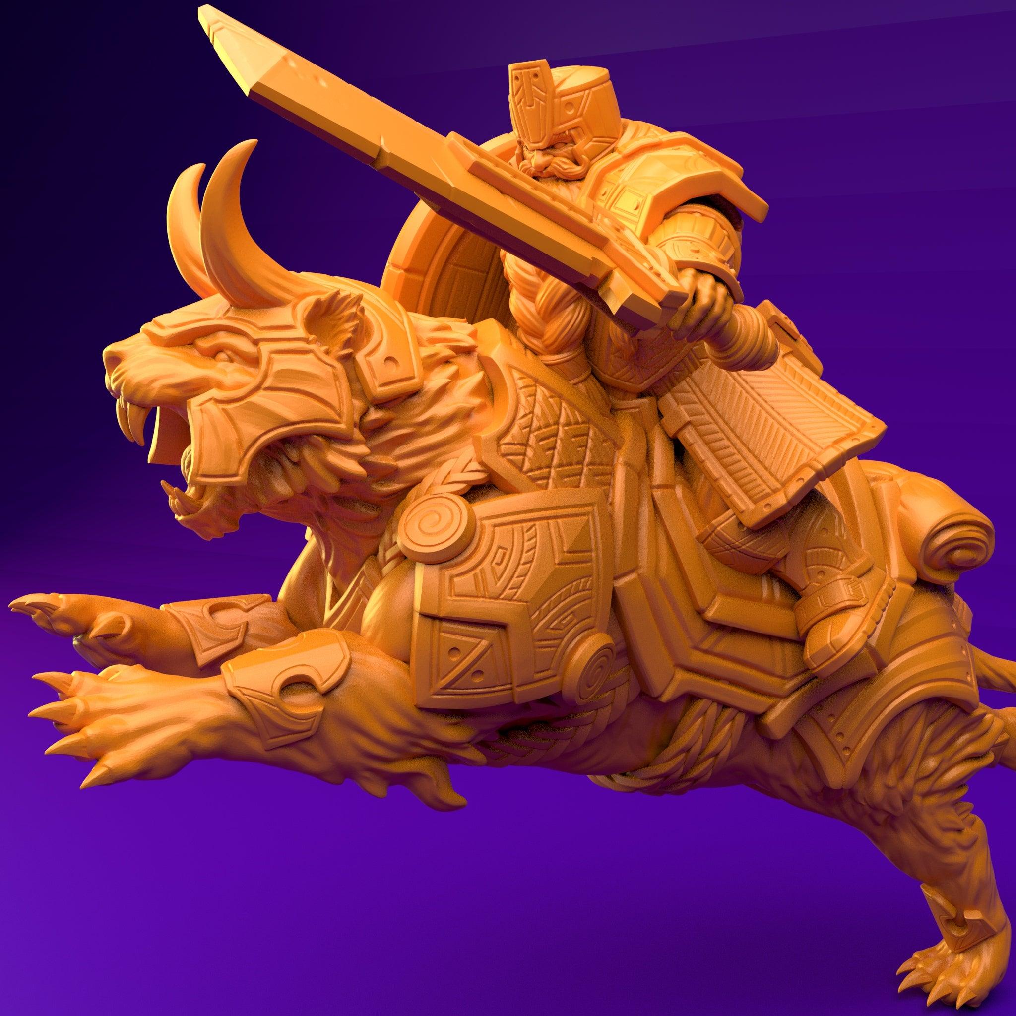 3D Printed Dwarf’s Army Nafarrate - Dwarf Tiger Rider Set 28mm 32mm Ragnarok D&D (Online Only)