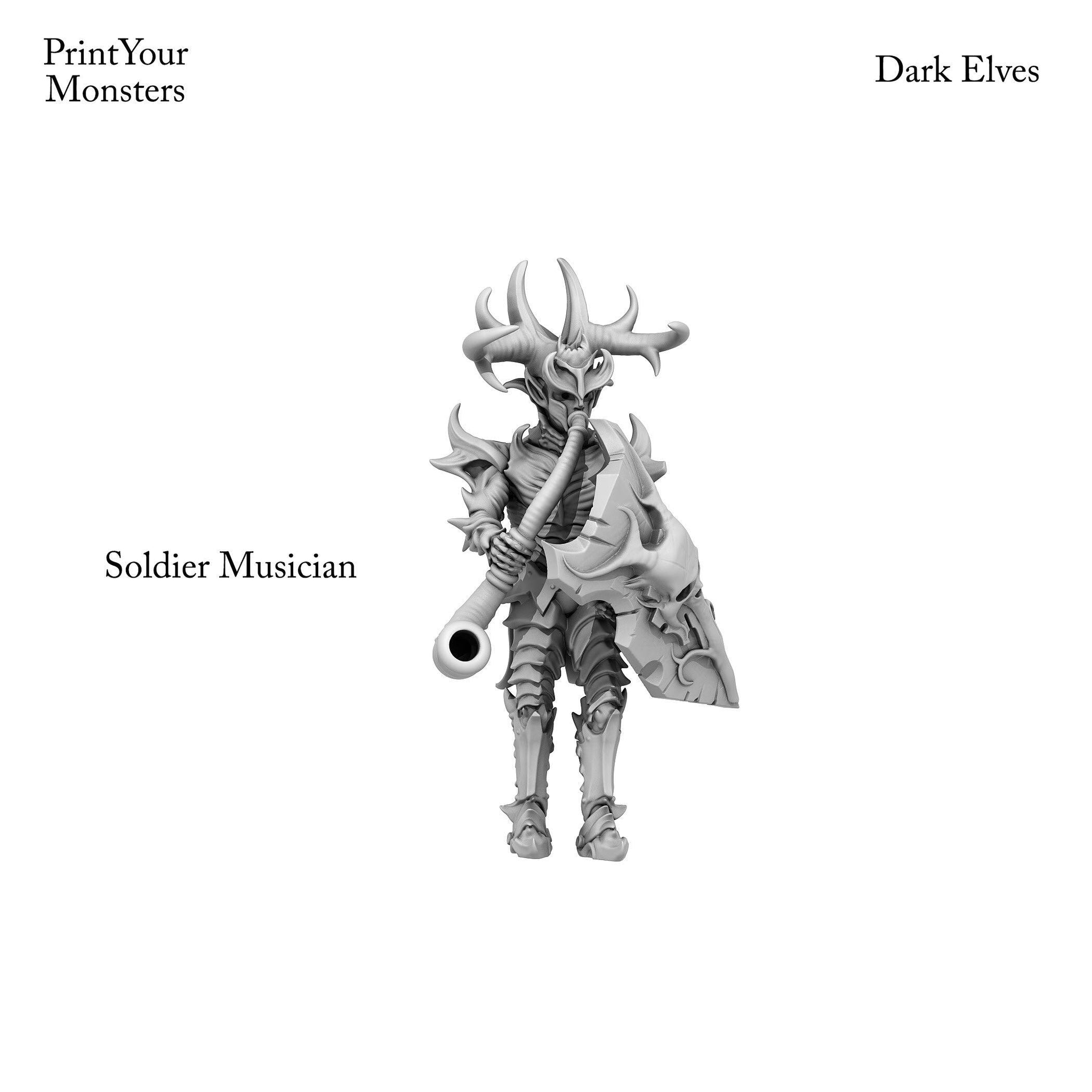 3D Printed Print Your Monsters Dark Elves Banner and Musician Set 28mm - 32mm D&D Wargaming (Online Only)