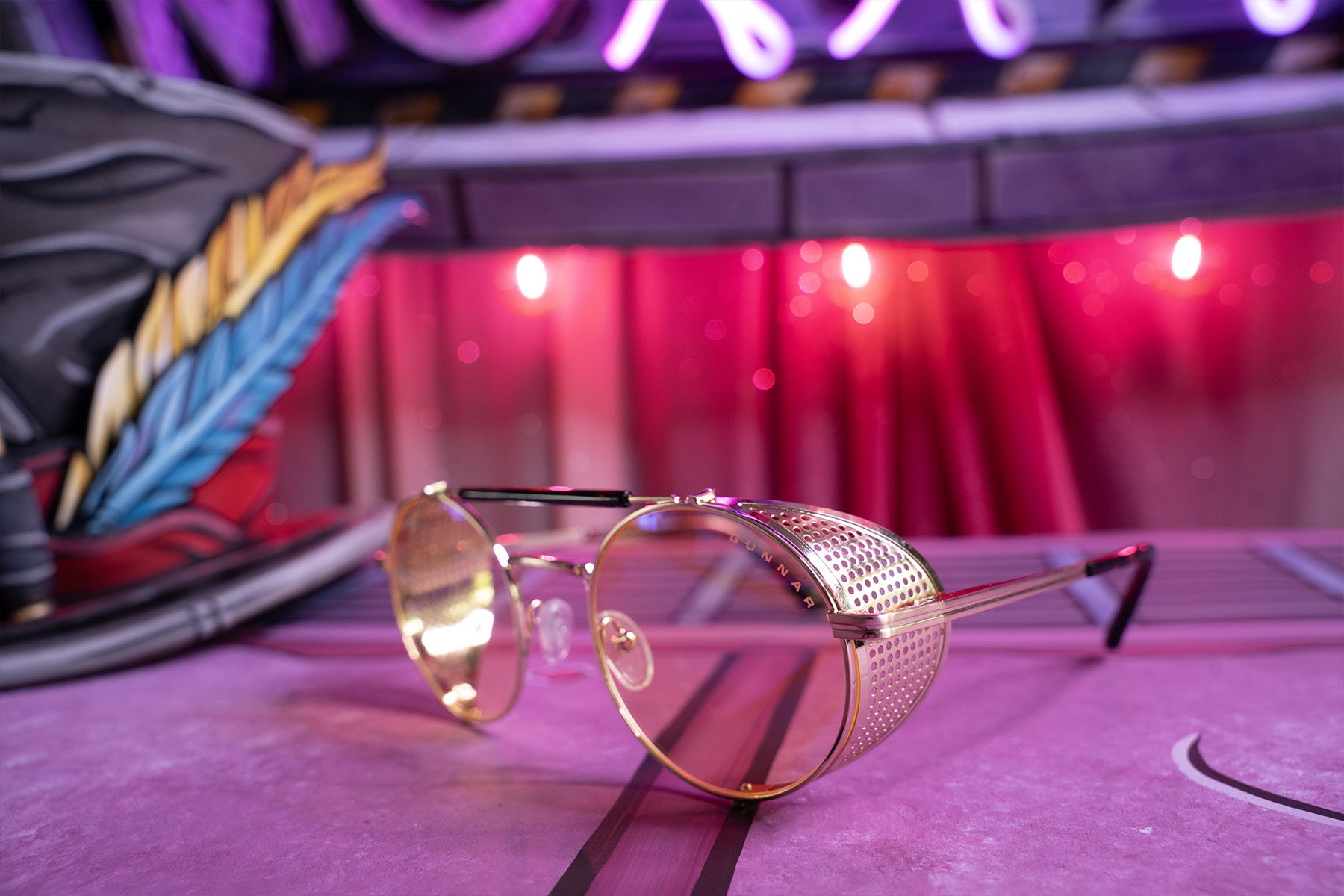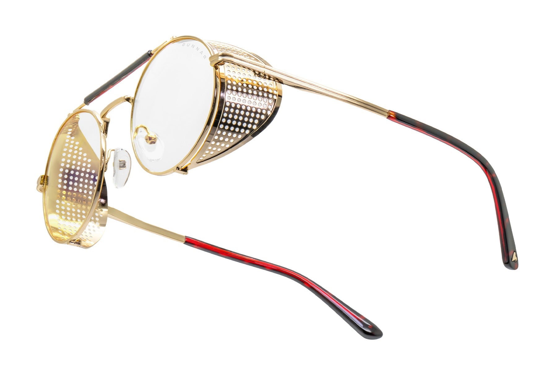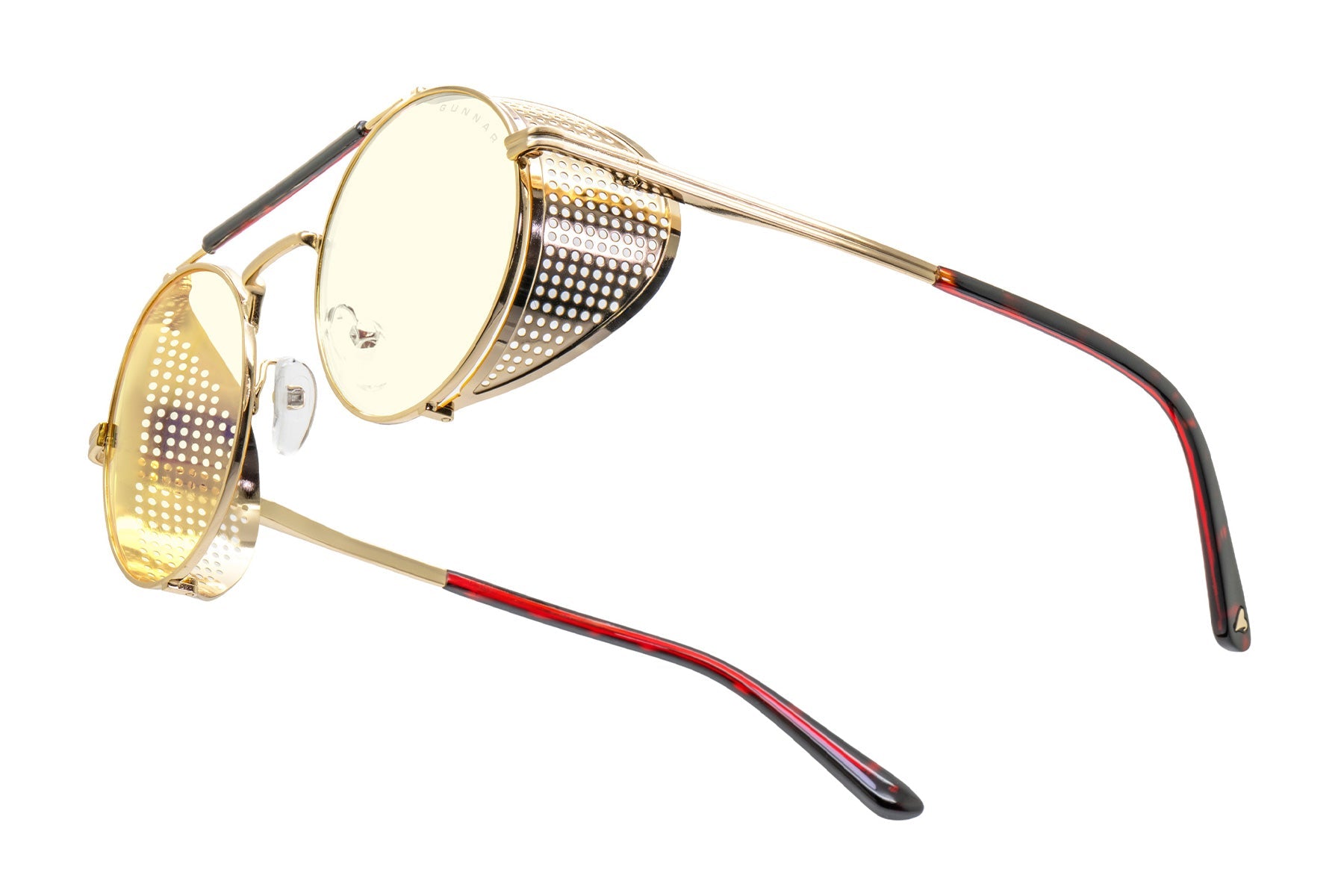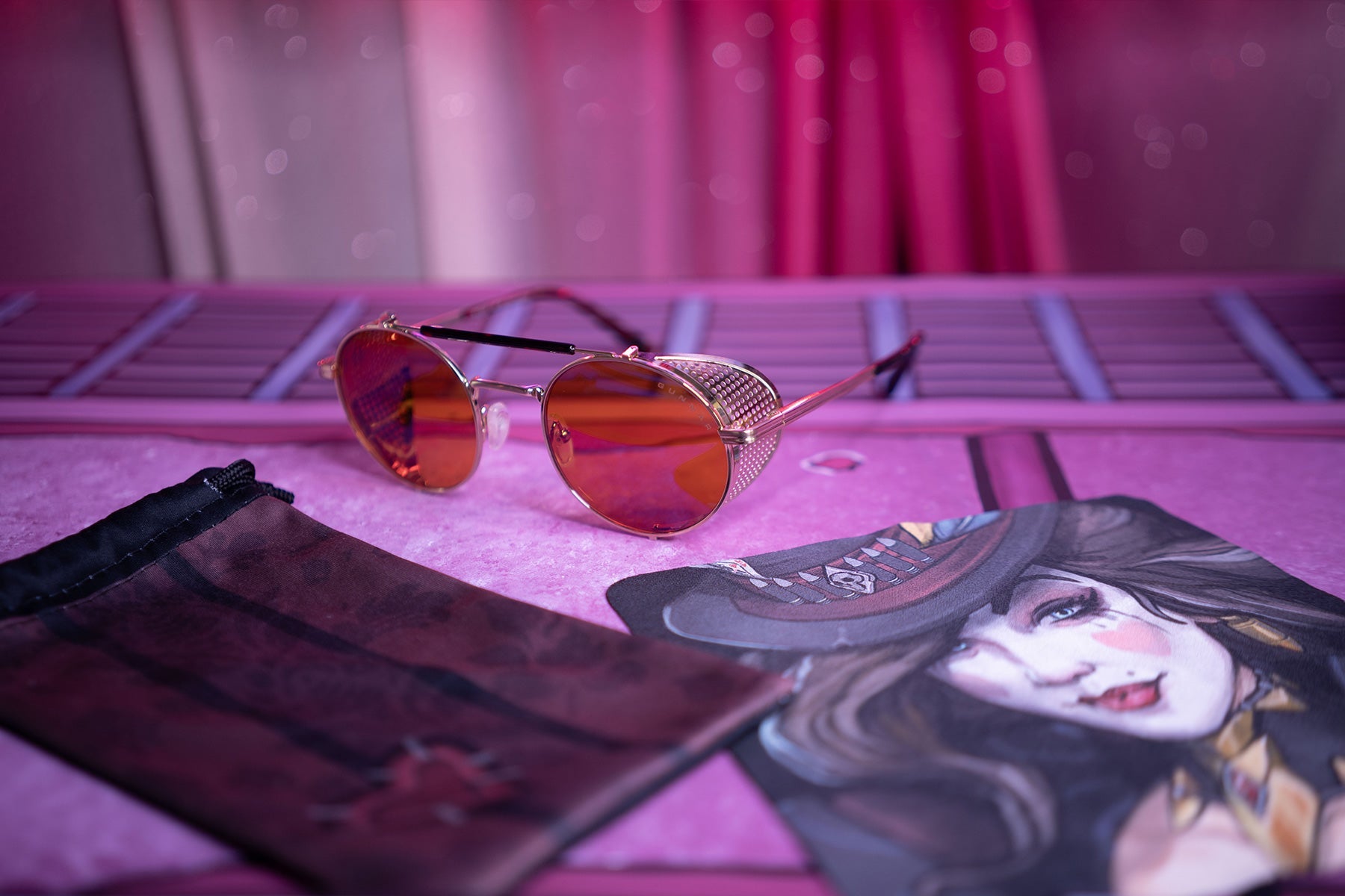 Place your bets on chaos. Introducing Borderlands 4: Moxxi glasses — a daring, steampunk-inspired design dripping with charisma and danger, just like Pandora’s most infamous hostess. The bold, round frame boasts a gold-tone finish with removable mesh side shields, adding a touch of flair with a side of mystery. A heart engraving on the lens and gold heart details on the temple tips reflect Moxxi’s signature style, while deep red temple arms pay tribute to her iconic color scheme. Available in two signature GUNNAR tints — Amber and Amber Max — these glasses are equipped with GUNNAR’s patented lens technology to protect against digital eye strain. Each pair comes with a custom microfiber cloth featuring Moxxi’s sultry portrait, a matching pouch with Borderlands — themed patterns, and a premium faux-leather case with a vault-inspired clasp. The perfect epic loot drop for any Vault Hunter ready to deal in mayhem.