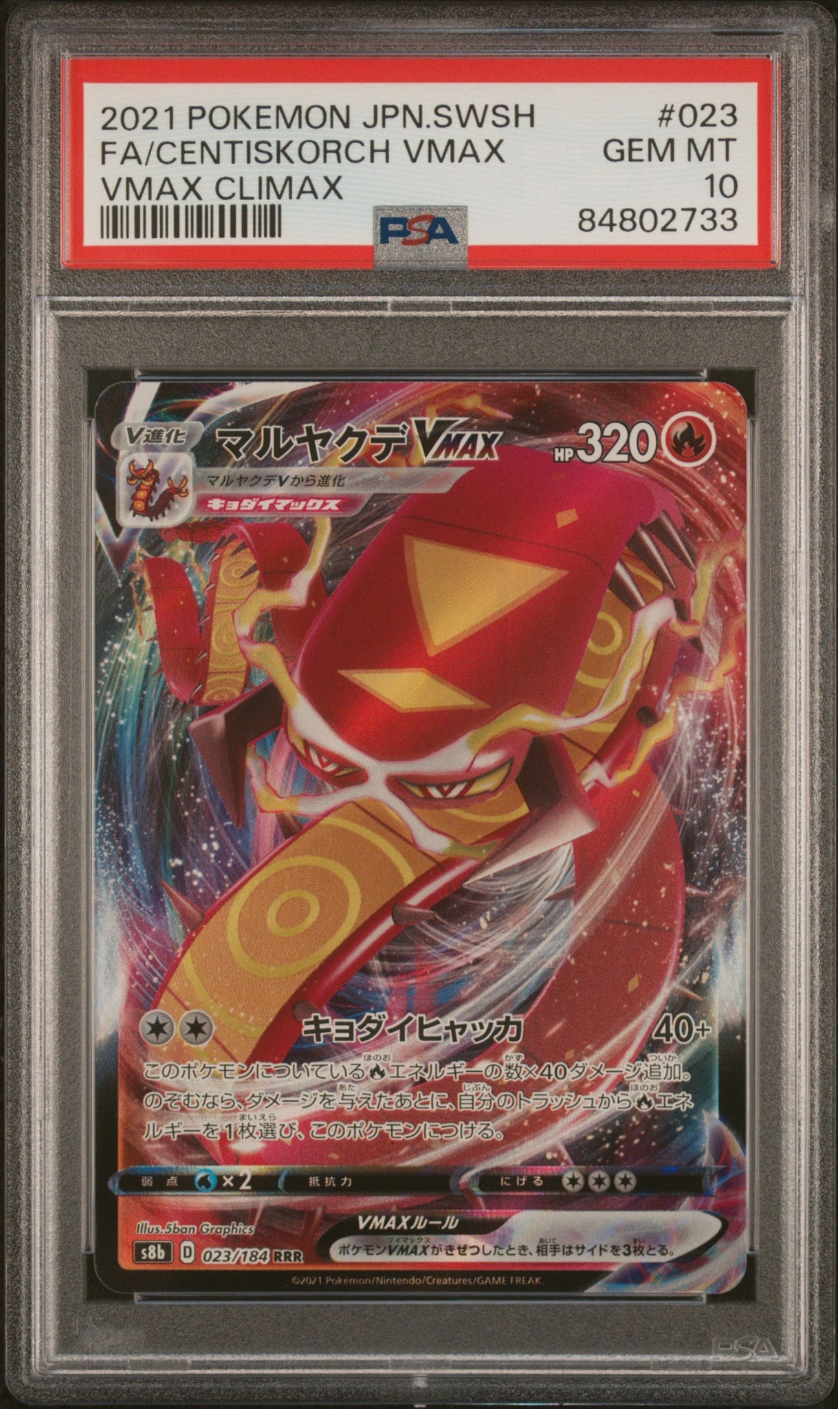 2021 POKEMON JAPANESE SWORD & SHIELD VMAX CLIMAX FULL ART CENTISKORCH VMAX #23 PSA 10 (Online Order Only)