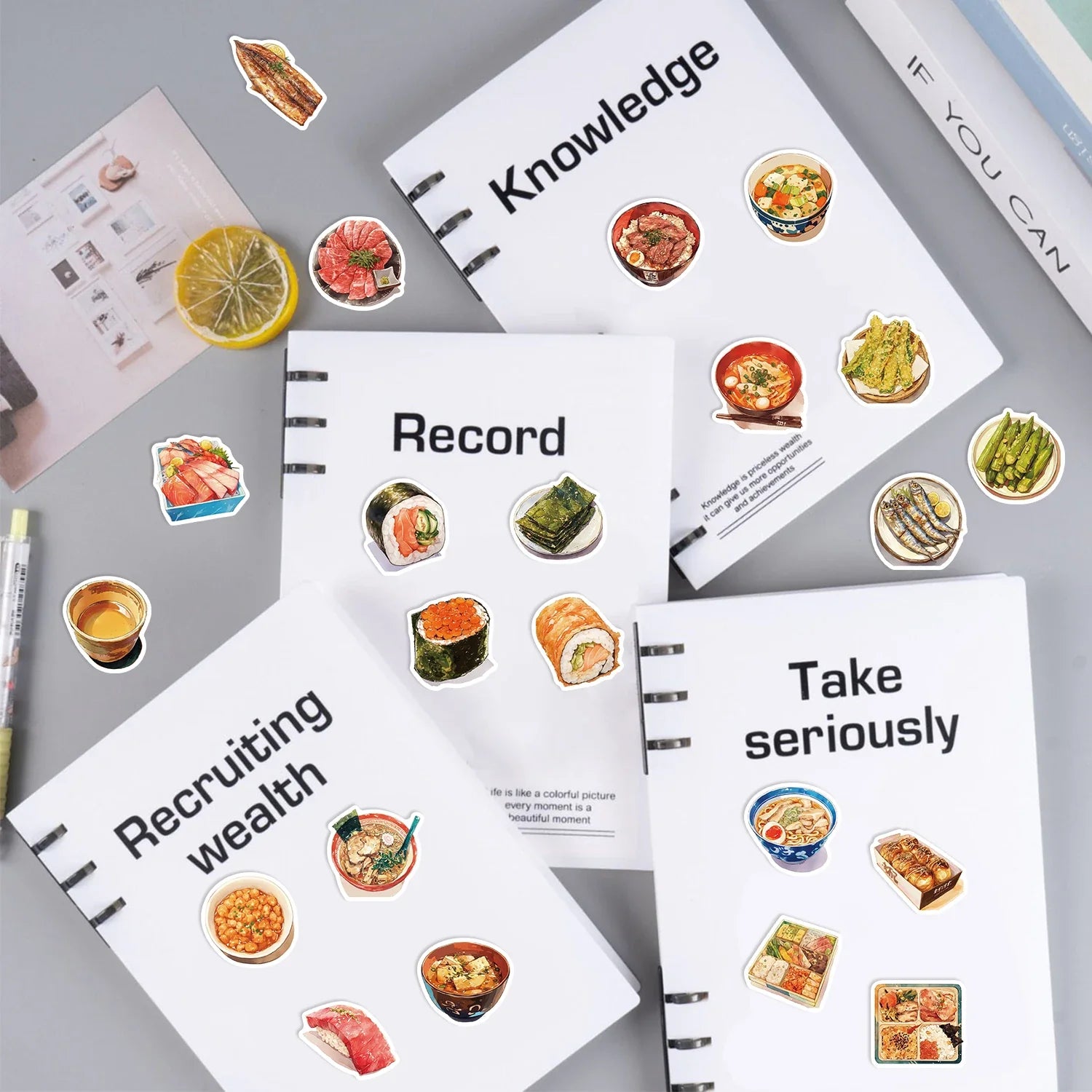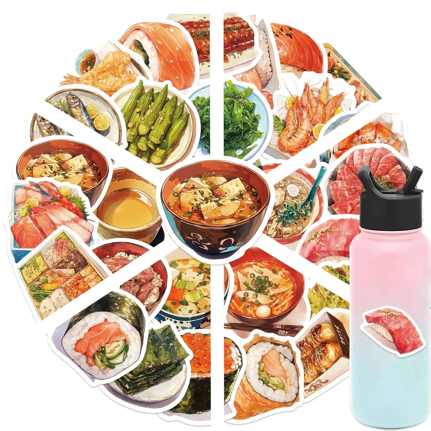 30Pcs Japanese Gourmet Food Stickers for Laptop Scrapbook Waterproof Cartoon Graffiti Decals Cute Sticker Toys Decor (Online Order Only)