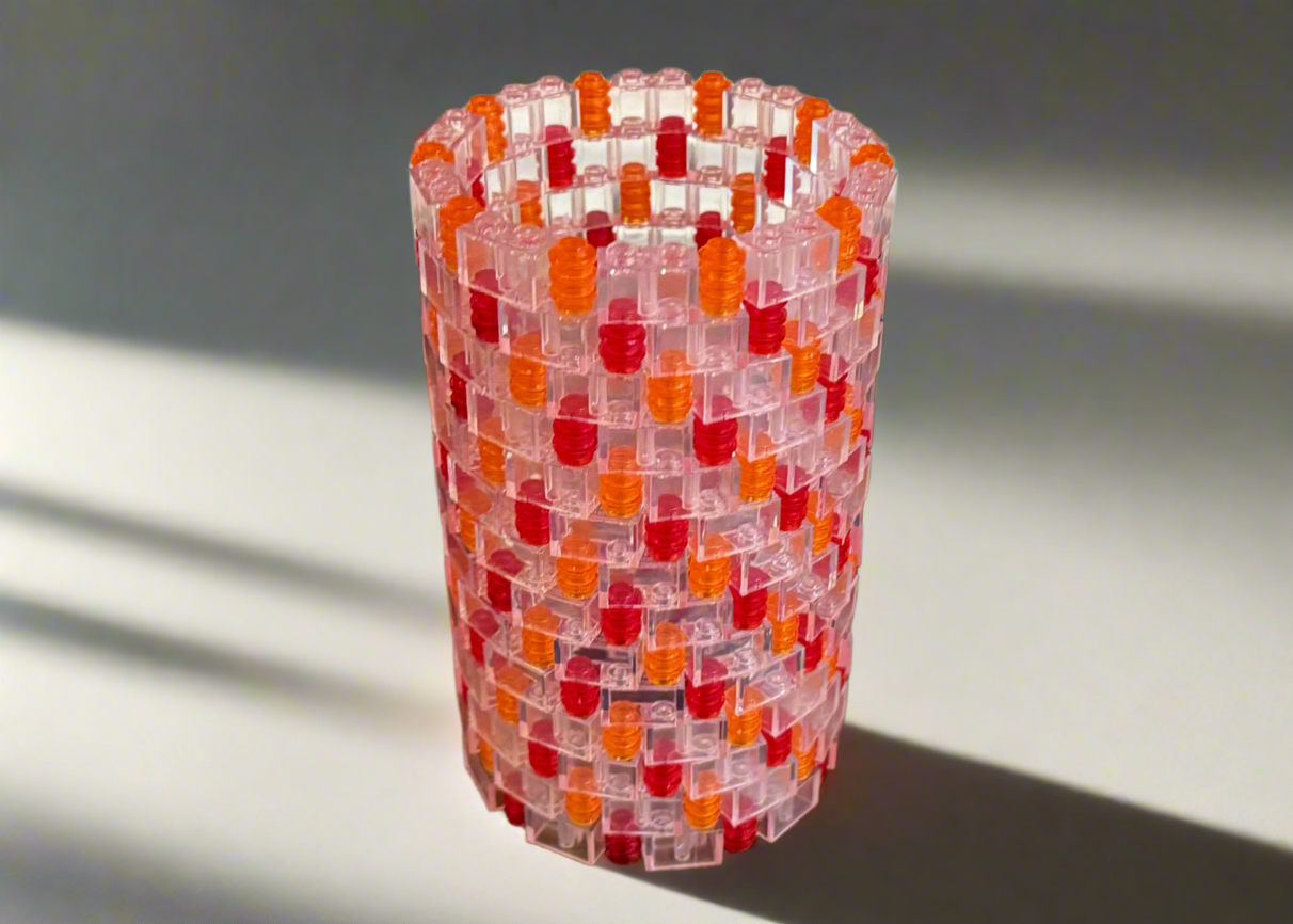 Clear, Red, and Orange Modular Vase – Built with LEGO®-Compatible Bricks (ONLINE ORDER ONLY)