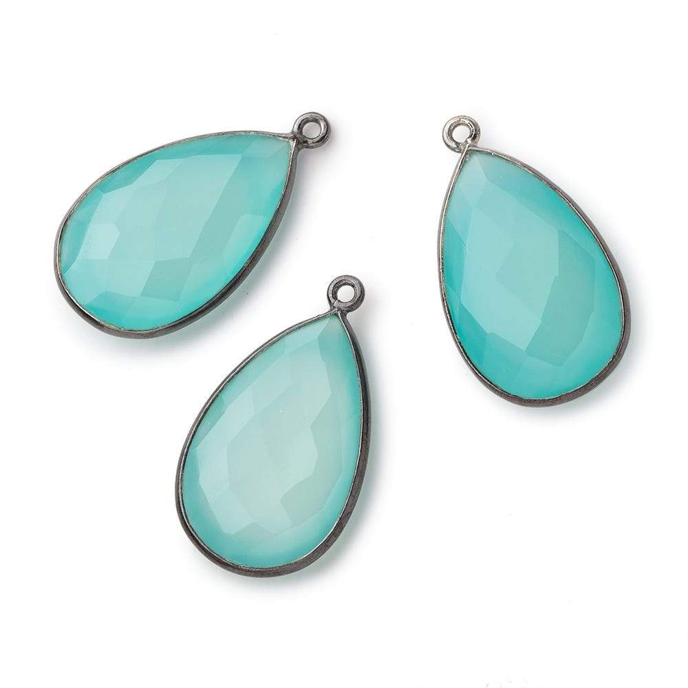 26x17mm Black Gold Bezeled Seaglass Chalcedony faceted Pear Pendant 1 piece (ONLINE ORDER ONLY)