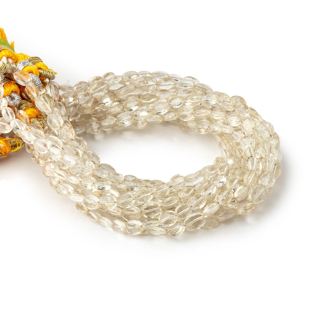 Oregon Sunstone Faceted Oval Beads have vitreous luster, excellent faceting creating a symmetrical oval shape. These Sunstone beads are well polished on their transparent bodies, show almost no internal characteristics, and have a light yellow hue.