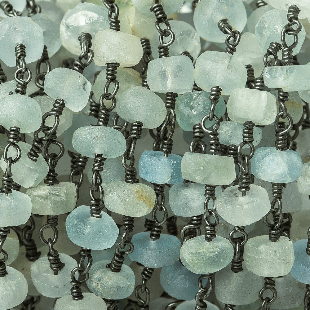 5mm Frosted Beryl plain rondelle Black Gold plated Chain by the foot is a hardy, hand created gemstone rosary chain sold by the foot. (3 quantity = 3 continual feet)