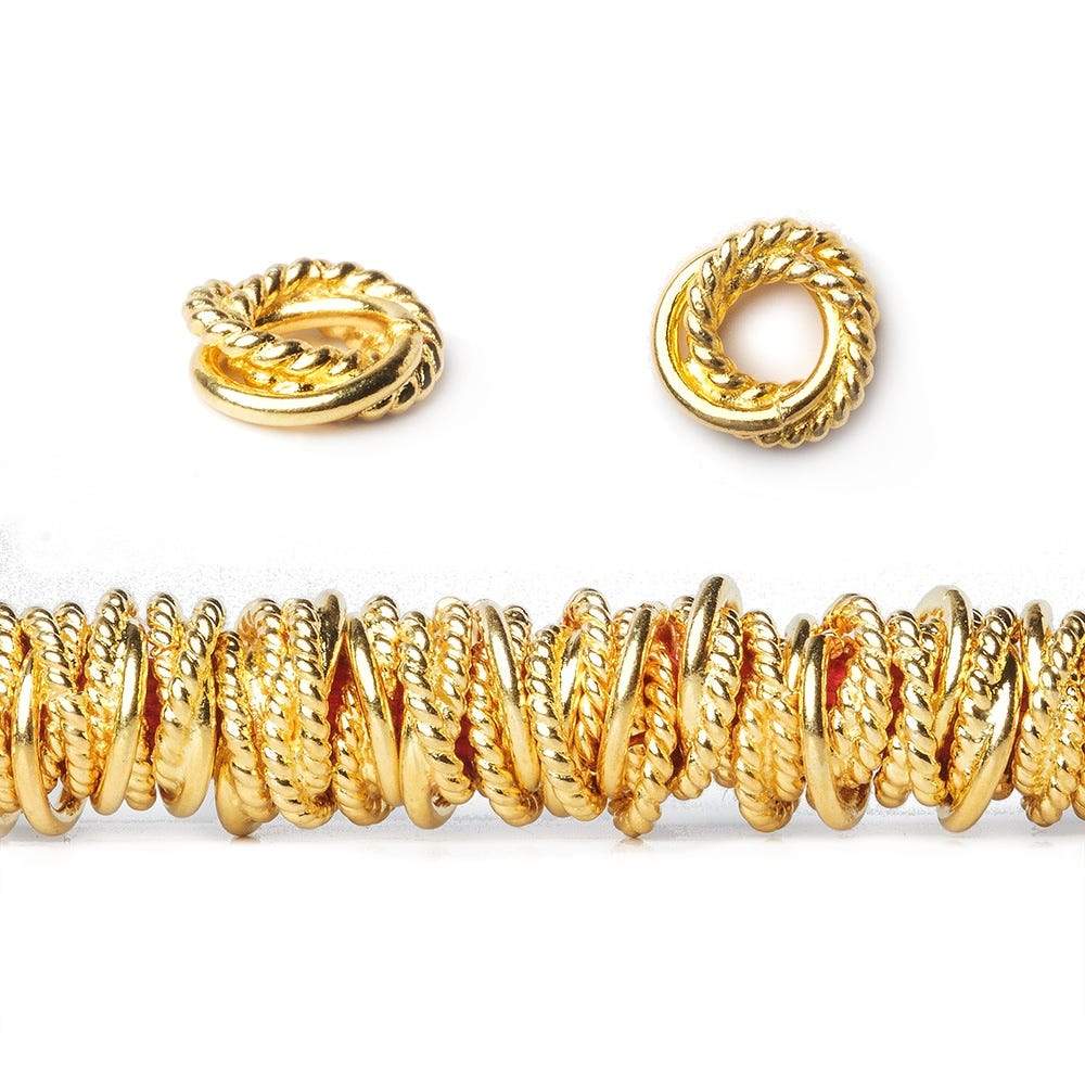 8mm Mobius Spacers with two twisted rings and one plain ring have a 3mm large hole and are plated over copper. This 8 inch strand with approximately 88 beads is available in 22kt Gold, Antiqued 22kt Gold (2.5mm hole with approx. 77 beads), Silver, Antiqued Silver, Rose Gold, Black Gold, and Antiqued Solid Copper.