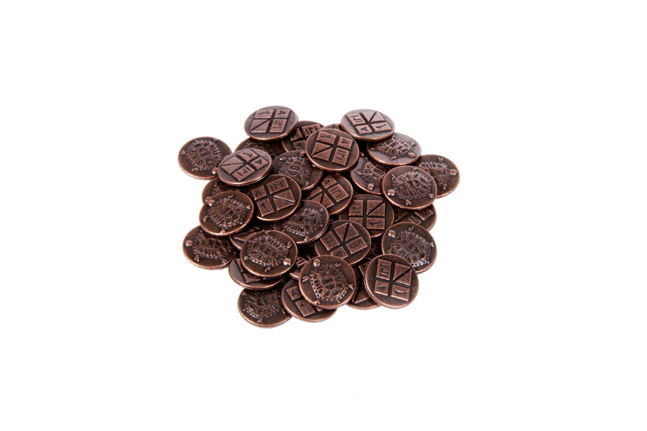 The art on these coins depicts a turtle, and is a nod to the Greek island Aegina. Aegina was the earliest Greek city-state to use coined money and served as the ispriation for these copper-colored coins.