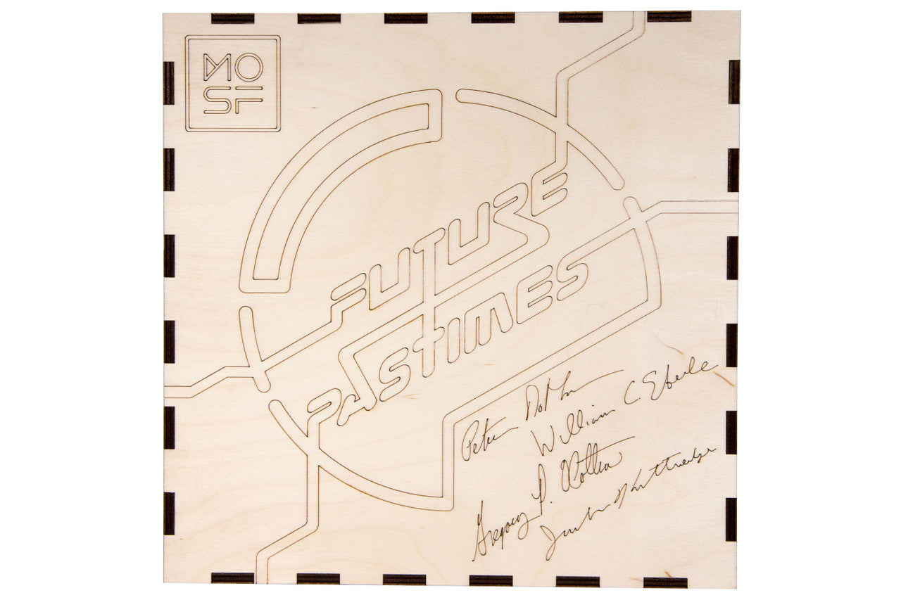 Our Designer Crate compatible with Cosmic Encounter by Fantasy Flight Games is engraved with the signatures of Future Pastimes' Peter Olotka, Bill Eberle, Jack Kittredge, and Greg Olotka.