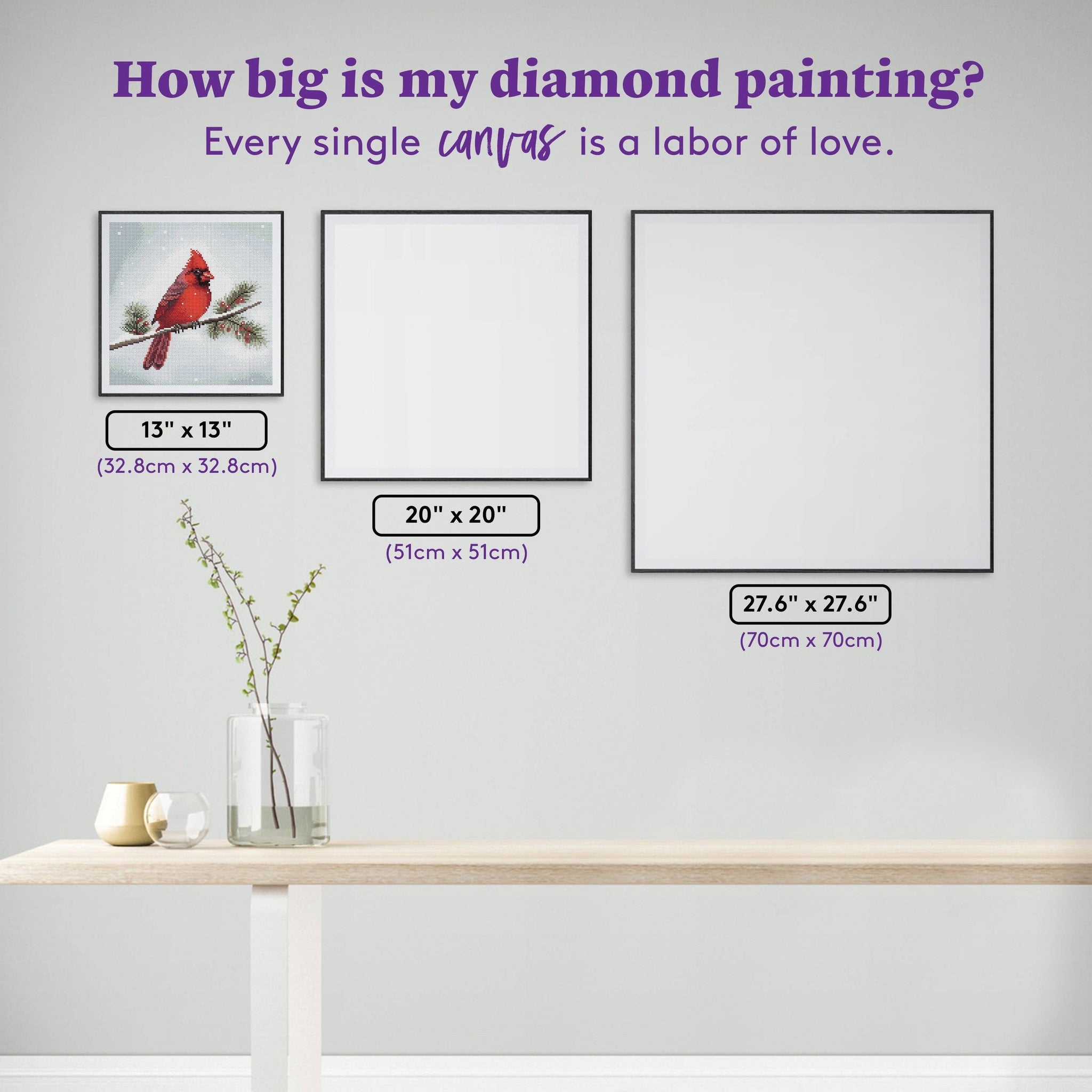 Celebrate the quiet beauty of the season with Winter Cardinal, a radiant diamond painting from Diamond Art Club. Perched on a snowy pine branch accented with red winter berries, the brilliant red cardinal brings a touch of warmth to the frosty scene. With 13,657 round drills in 42 colors, including 3 AB (Aurora Borealis) drills and 1 special diamond, this compact full-drill canvas shimmers with holiday charm. Measuring 13" x 13" (32.8cm x 32.8cm), it’s the perfect project for winter crafters, bird lovers, or anyone who wants a quick and festive design that captures the spirit of the season.