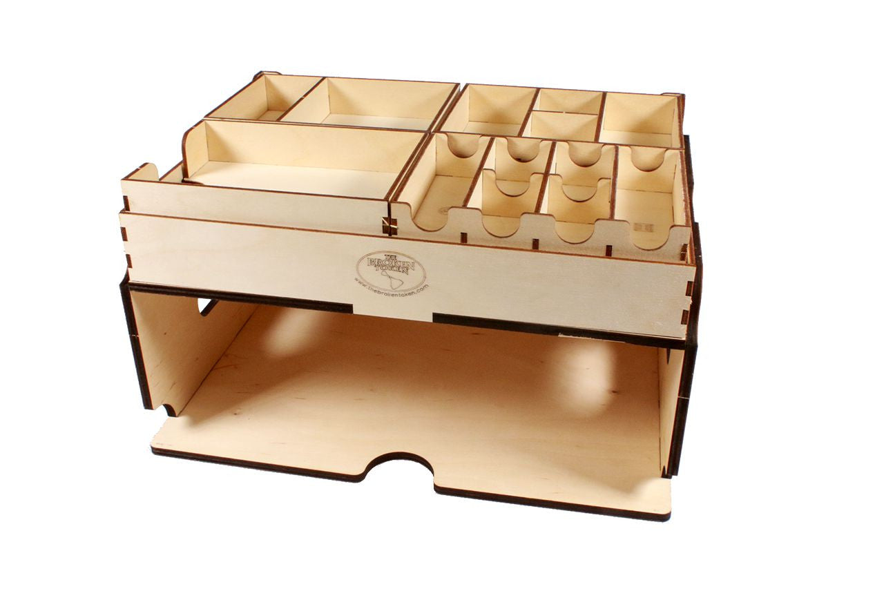 Feel like you want to burn your game boxes to the ground? Avoid a real call to the fire department with this Game organizer compatible with Flash Point: Fire Rescue. Six removable trays hold all the tokens for the base game, expansions and promo items. An out-of-the-way 4” tall storage pocket allows easy access for all your game boards. Features 6 removable trays, storage for miniatures, and a 4" game board storage pocket.