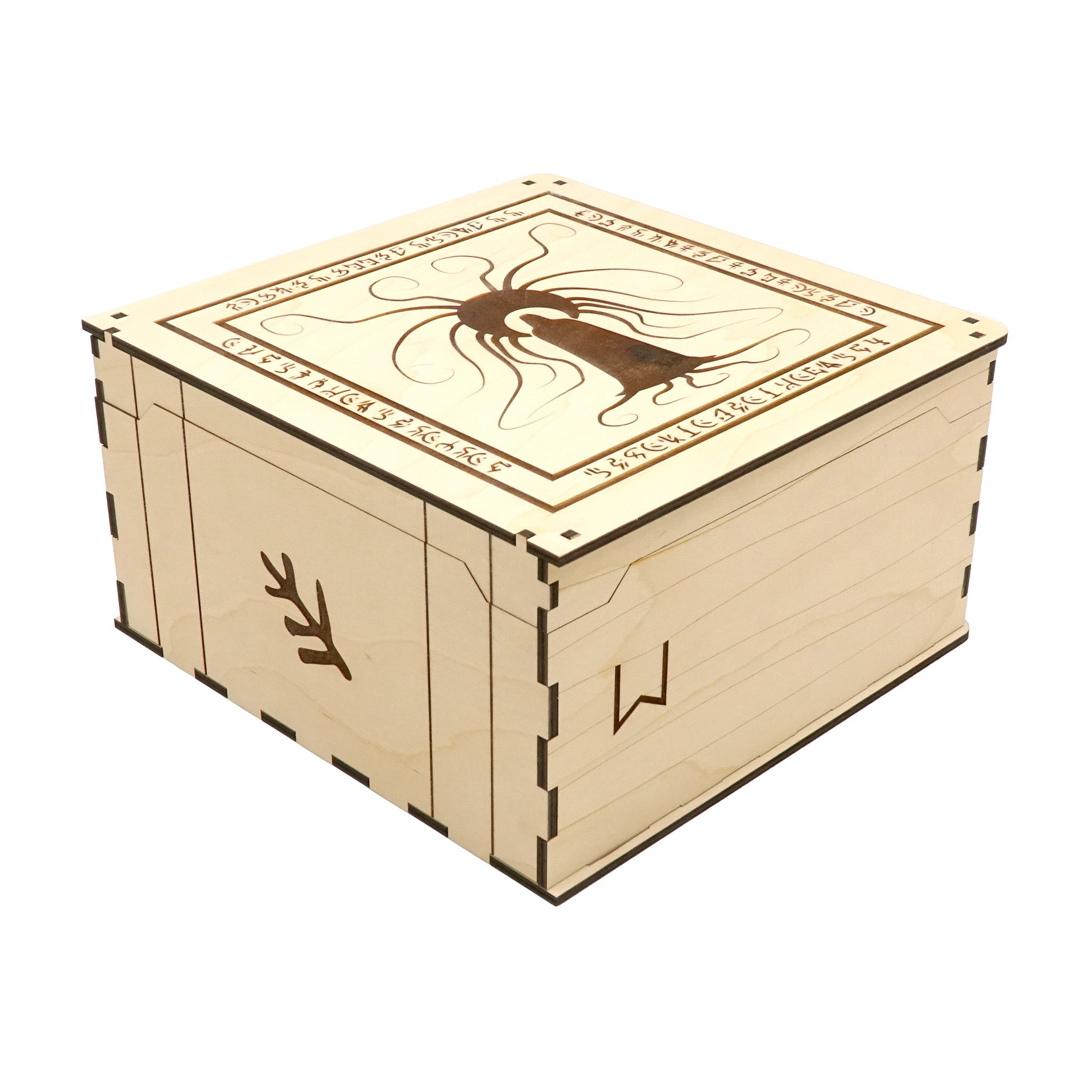 Dark lore and forbidden knowledge of Arkham can be safely recorded and sealed in our game crate upgrade for our Arkham Horror 3rd Edition Compatible Base Game Organizer and Arkham Horror 3rd Edition Compatible Expansion Organizer (both sold separately). Featuring runes and an Elder Sign on the spine, this tome will keep your secret rituals and game safe and organized between sessions.