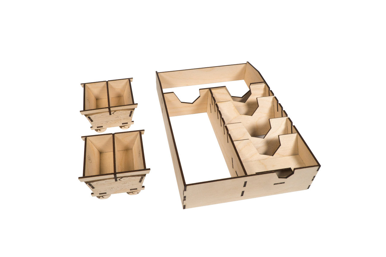 Mining is messy business, but that doesn't mean your games should be. Let's get back to work with the Broken Token organizer for Quartz by Passport Game Studios. This organizer features an adjustable card row that supports sleeved cards, and two removable mine cart trays to sort your coins. You'll also find a cavernous spot to store your bag of crystals, ready for play. We bet you a whole mine you'll be happy with this organizer!