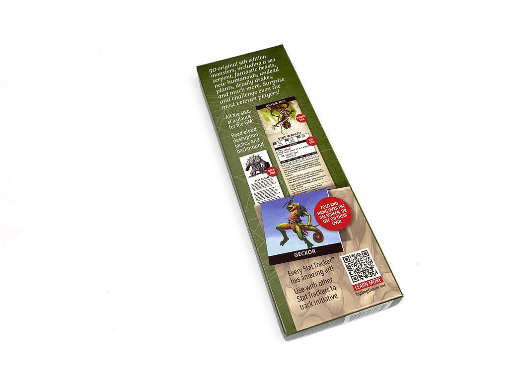 50 spectacularly-illustrated DnD monsters on dry erase friendly stat cards. Just fold them over the DM screen or prop up on the table for easy reference and tracking initiative. “From the Wild” contains our own creations for 5e / 2024 DnD – including a sea serpent, fantastic beasts, new humanoids, undead plants, deadly drakes, and many more. Surprise and challenge even the most veteran players with these unique creatures!