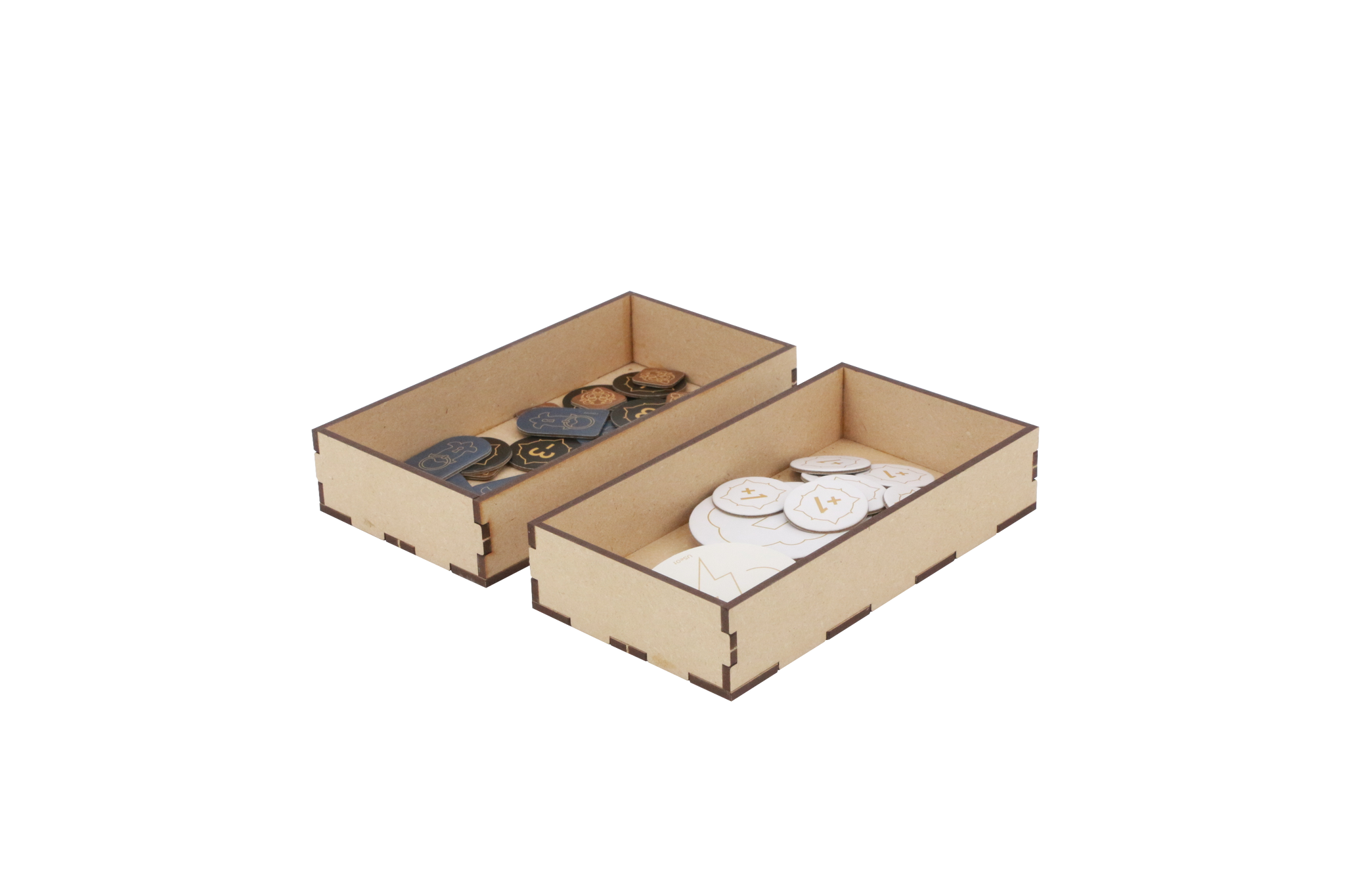 This deluxe organizer also has three removable trays for the various tokens, or you can set those aside and store the cauldron with power tokens in their place.
