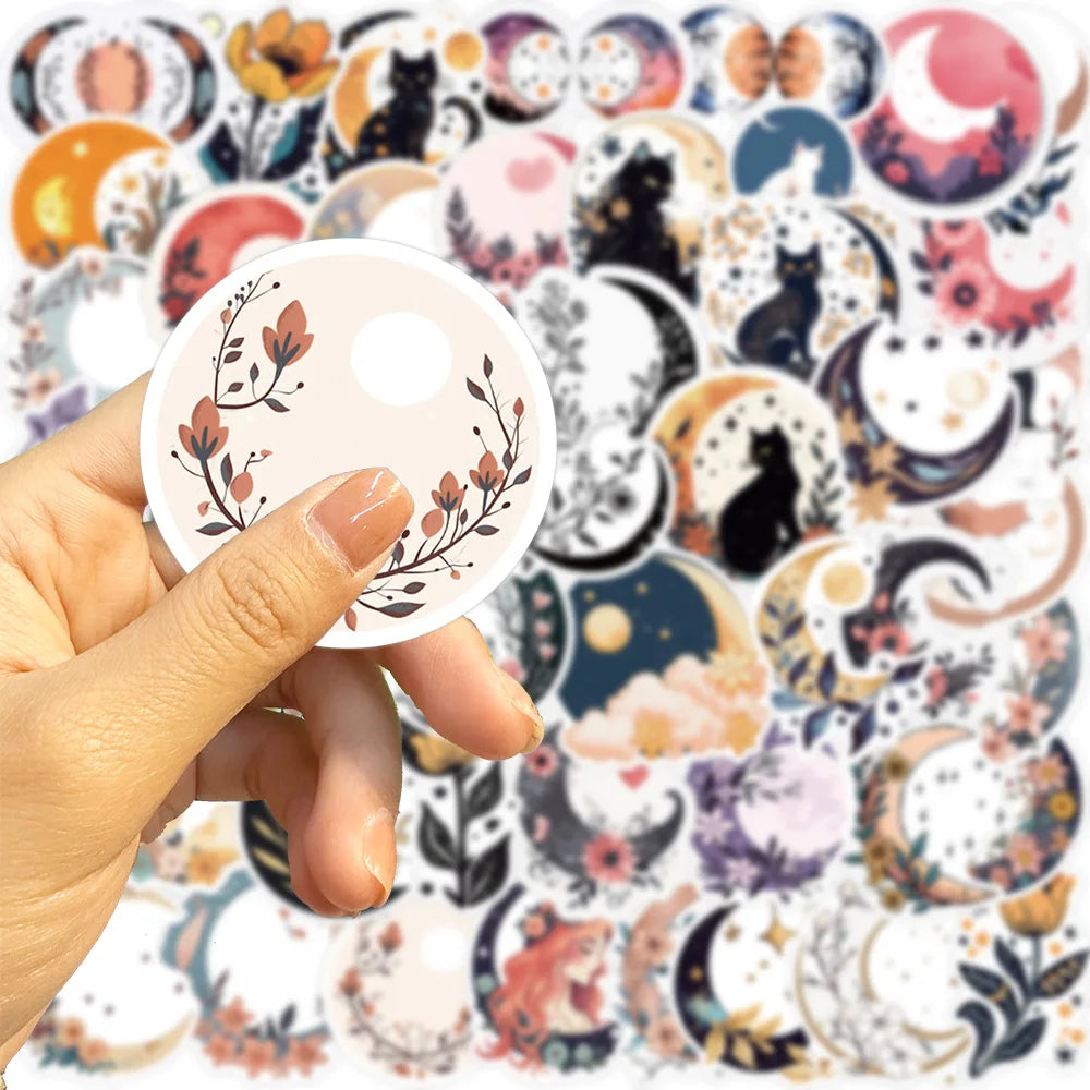 10/30/50PCS Moon Flowers Cat Stickers Aesthetic Cartoon Art Graffiti Decals DIY Travel Luggage Phone Laptop Waterproof Sticker (ONLINE ORDER ONLY)