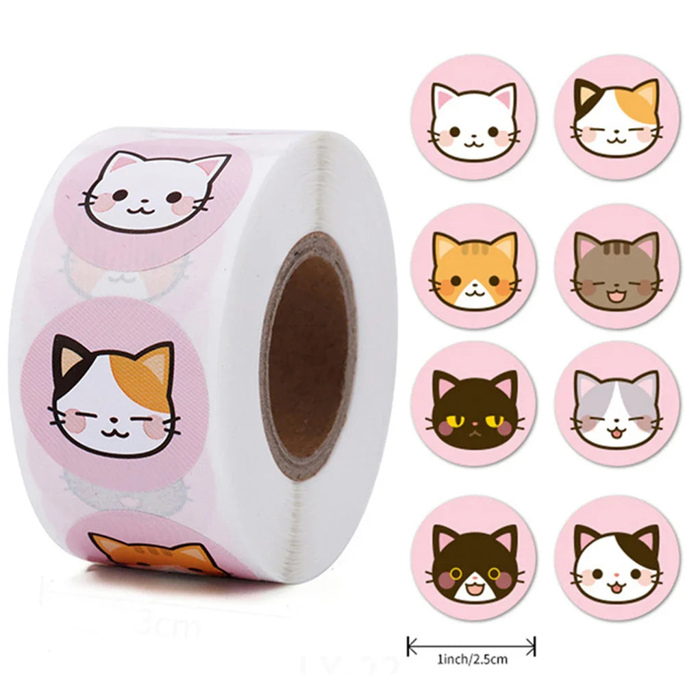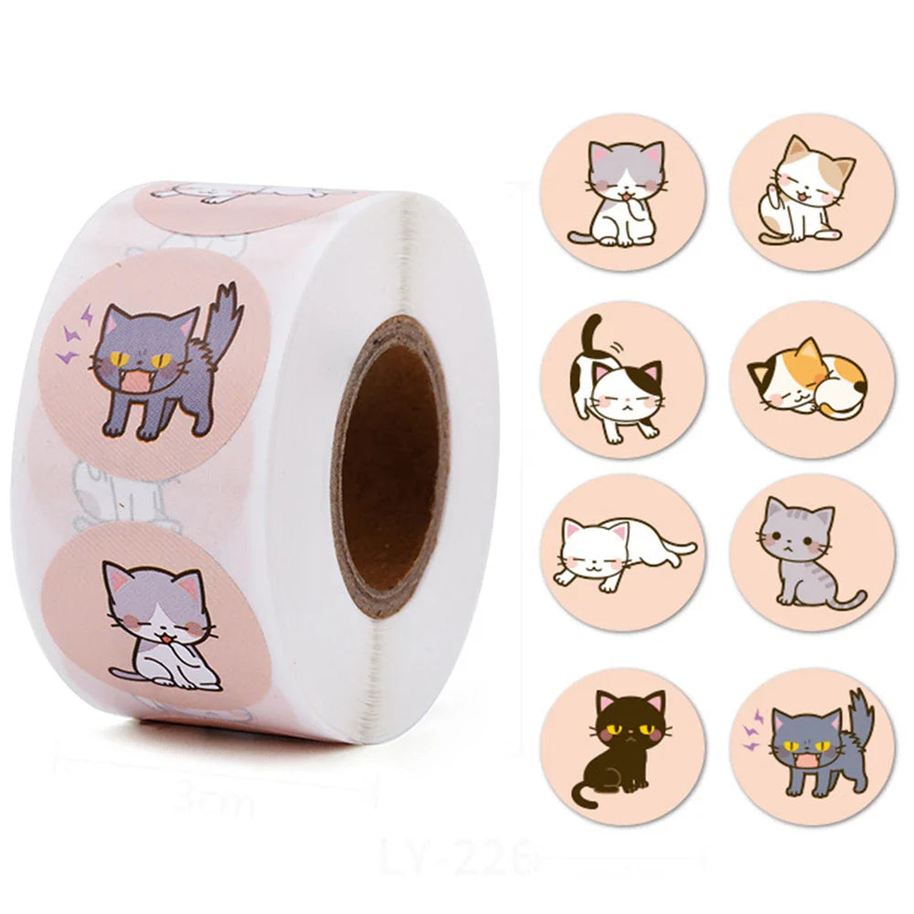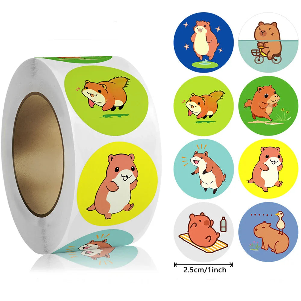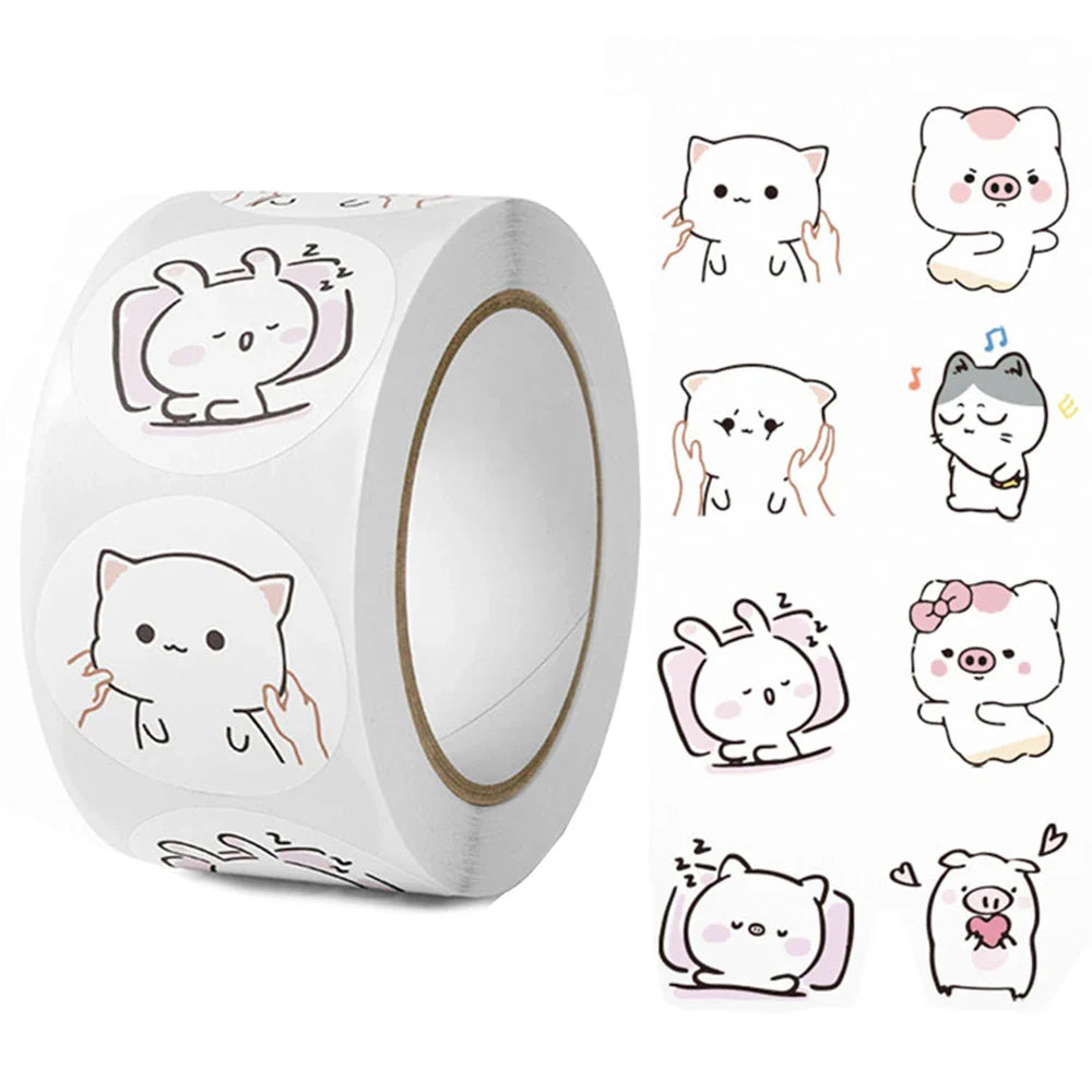 500pcs/Roll Cartoon Animal Stickers Anime Round Seal Diy Laptop Decals Stickers Cute Book Children Reward Kids Toy Gift (ONLINE ORDER ONLY)