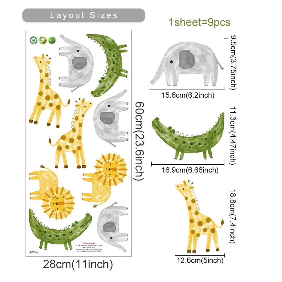 Transform your child's space into a whimsical wonderland with our Cartoon Cute Lion Elephant Giraffe Stickers! These delightful Animals Wall Stickers are perfect for kids' rooms, nurseries, and baby boys' bedrooms. Crafted from high-quality, durable materials, these wall decals are designed to withstand the test of time, ensuring long-lasting enjoyment. Easy to apply and remove, they leave no residue, making them ideal for renters or those who love to redecorate. Versatile enough for indoor and outdoor use, these stickers are perfect for travel, allowing you to bring a touch of magic wherever you go. The vibrant colors and charming designs captivate young imaginations, fostering creativity and joy. Enhance your child's environment with these adorable, easy-to-use wall decals, and watch their room come to life. Perfect for parents seeking quality, durability, and style, our Cartoon Cute Lion Elephant Giraffe Stickers are a must-have for any child's space.