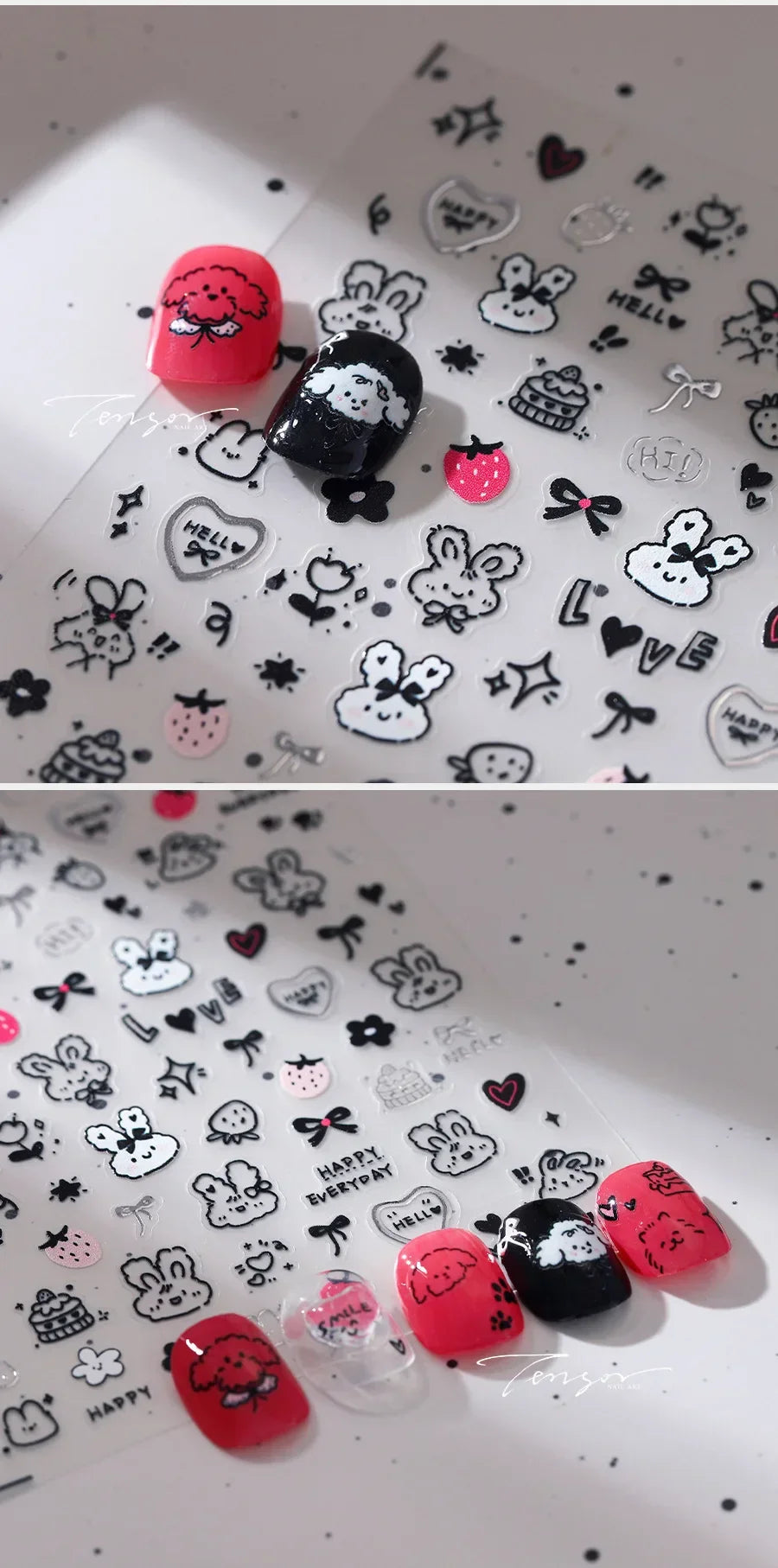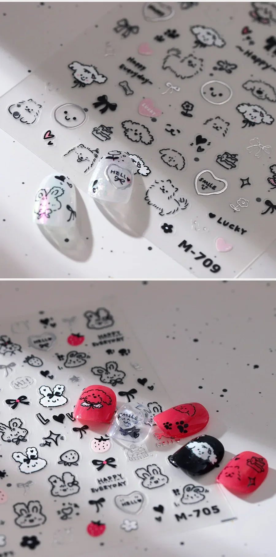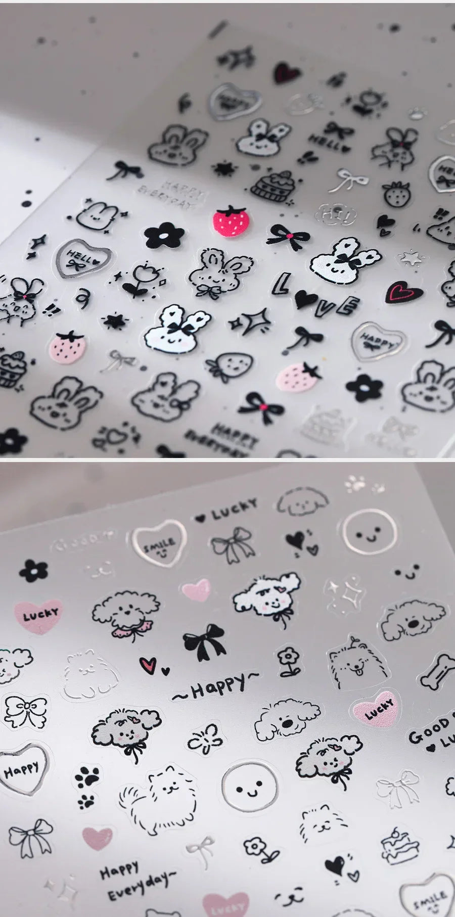 Dog Rabbit Line Bunny Footprint Bowknot Heart Cake Strawberry Flowers Bone Graffiti Adhesive Nail Art Stickers Manicure Decals (ONLINE ORDER ONLY)