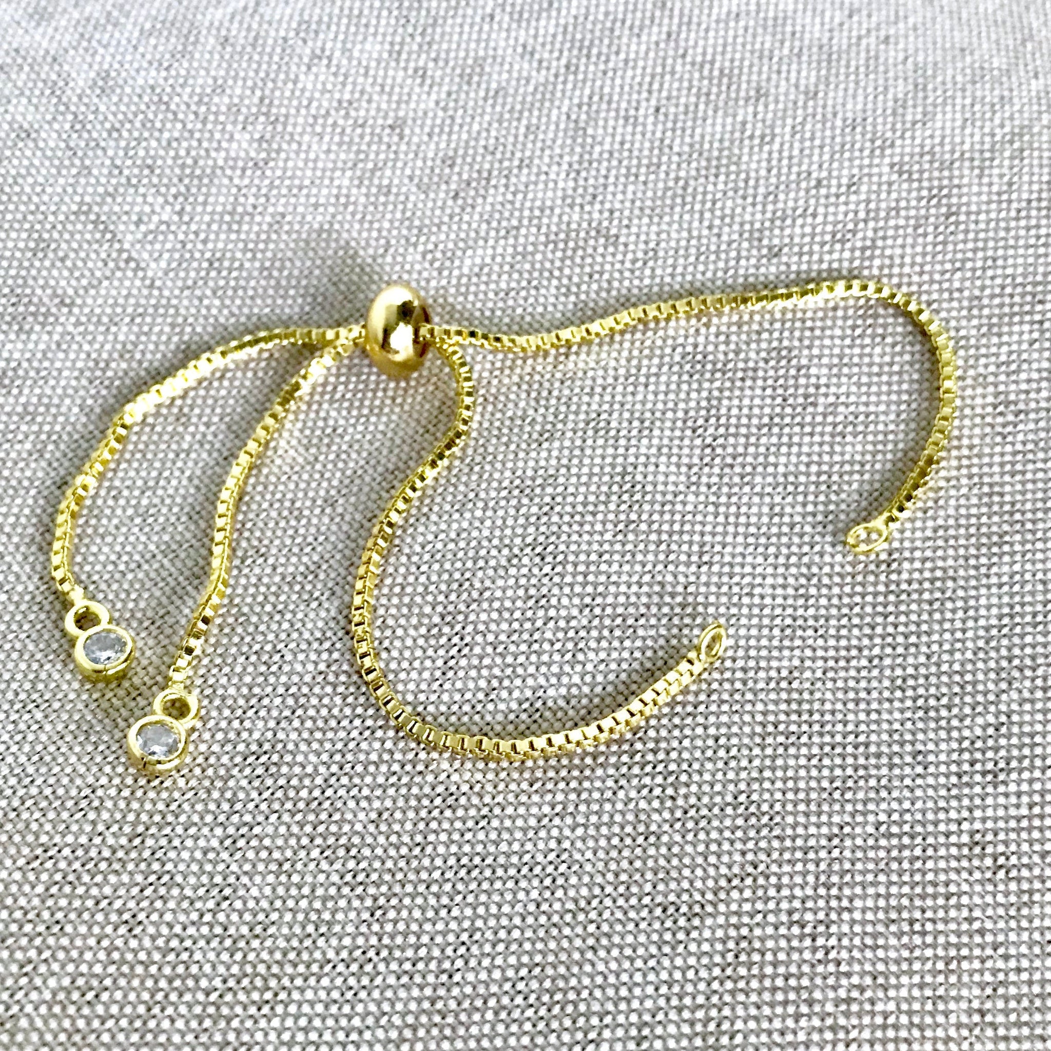 Gold Plated Box Chain - Dainty Fine - Adjustable 5 to 9 Inches - with Open Loops - Adjustable Box Chain Bracelet - Gold Plated (ONLINE ORDER ONLY)