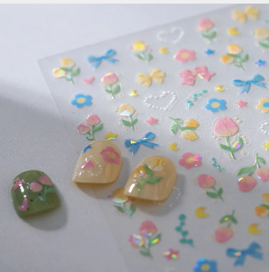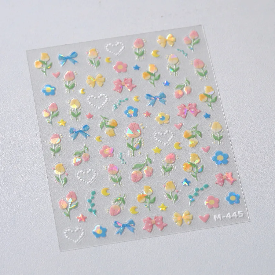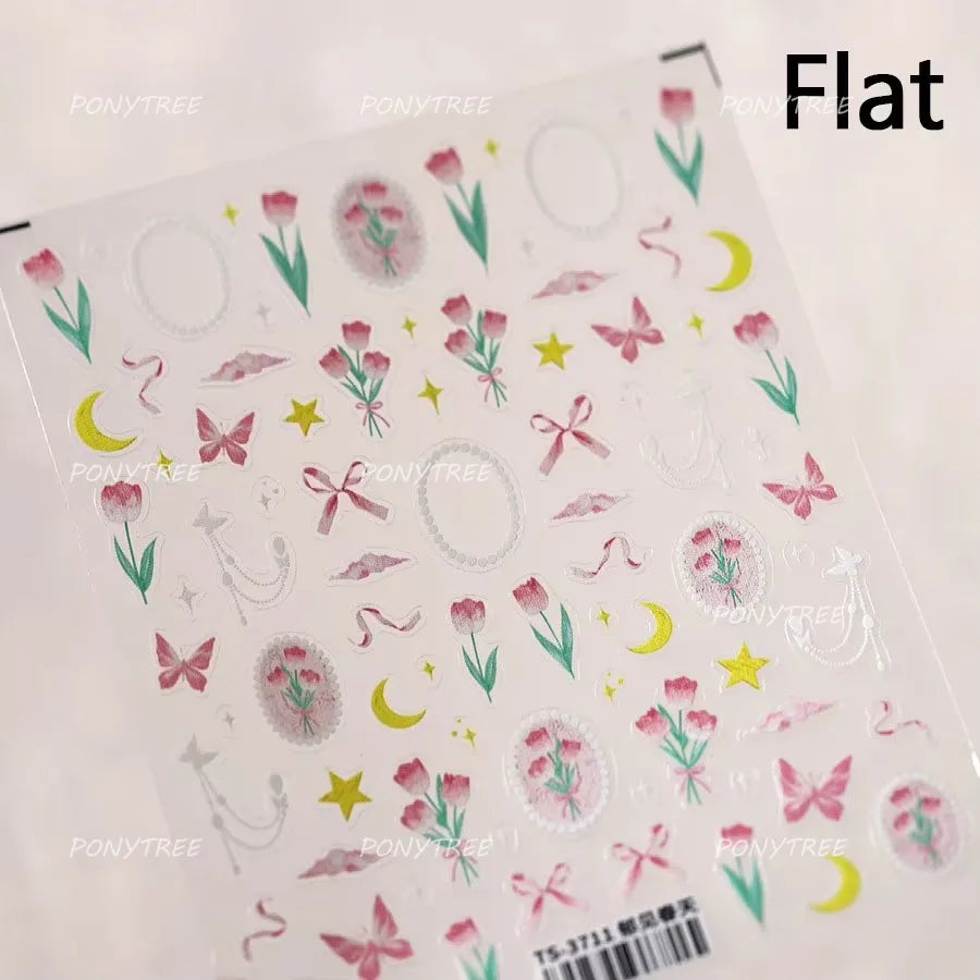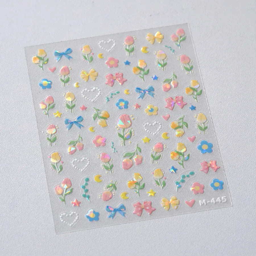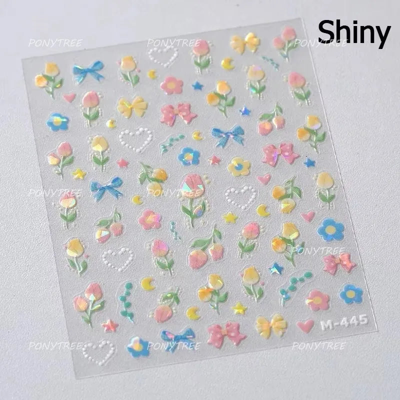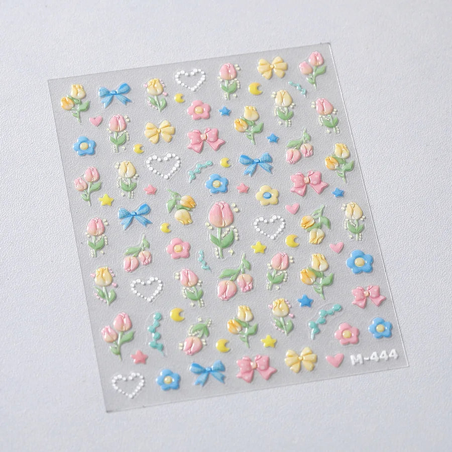 Lovely Bowknot Flower Shiny Star Love Heart Vibrant and Lively Tulip Moon Self Adhesive Nail Art Stickers Relief Manicure Decals (ONLINE ORDER ONLY)