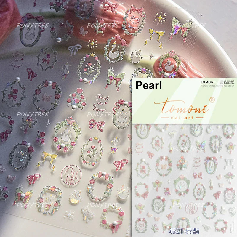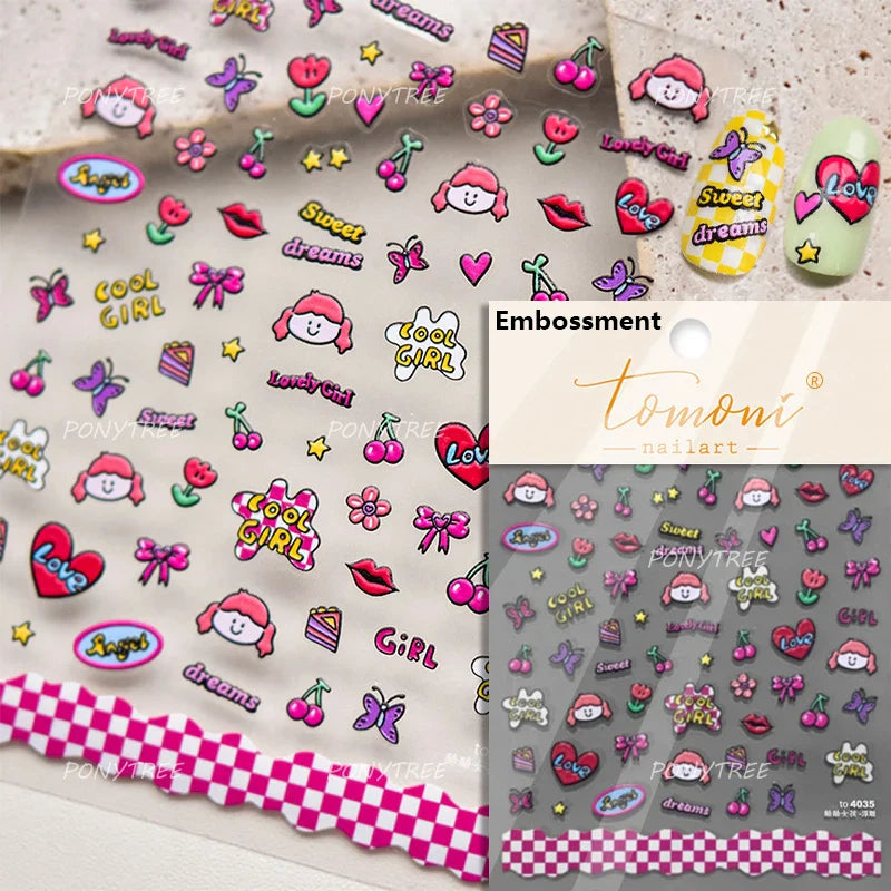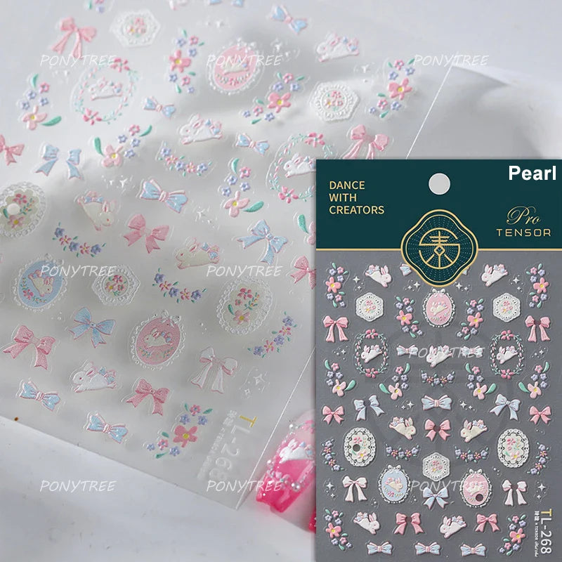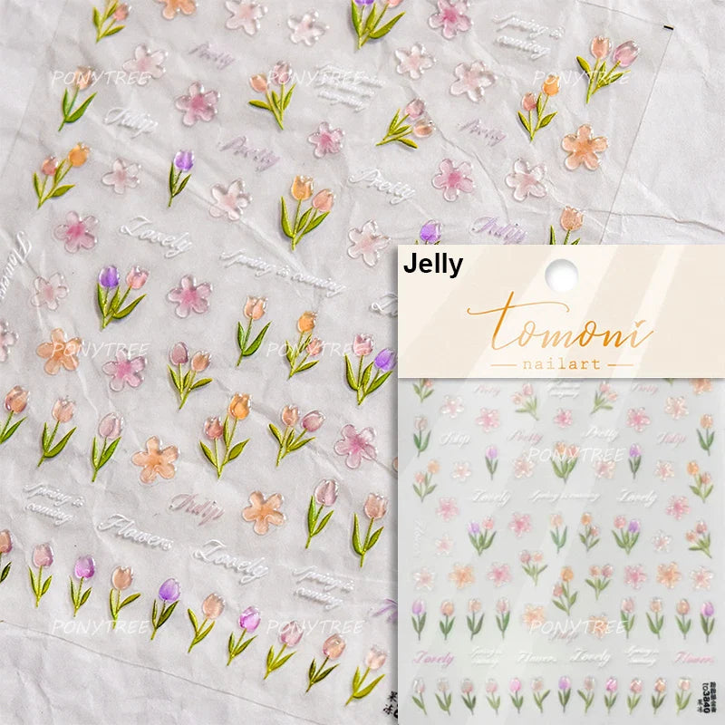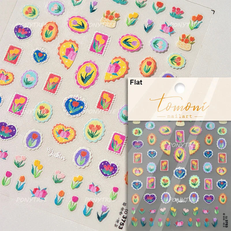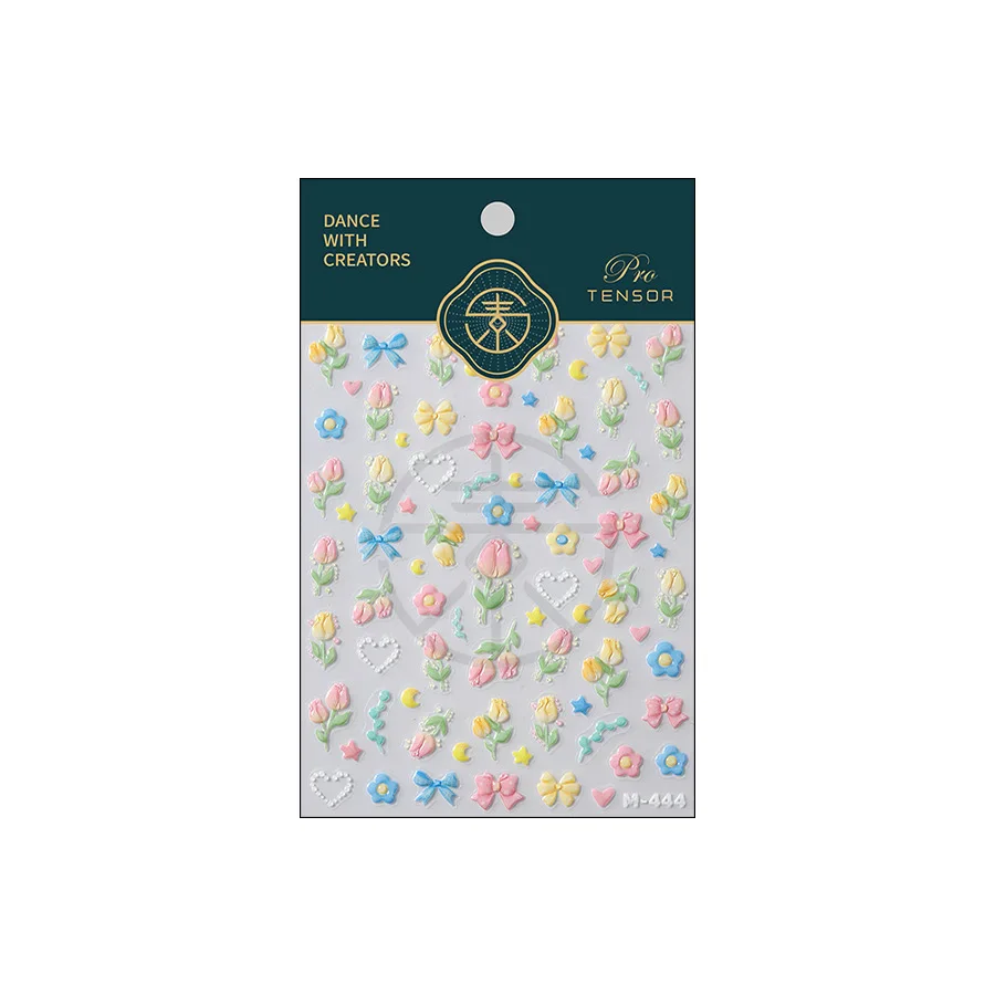 Lovely Bowknot Flower Shiny Star Love Heart Vibrant and Lively Tulip Moon Self Adhesive Nail Art Stickers Relief Manicure Decals (ONLINE ORDER ONLY)