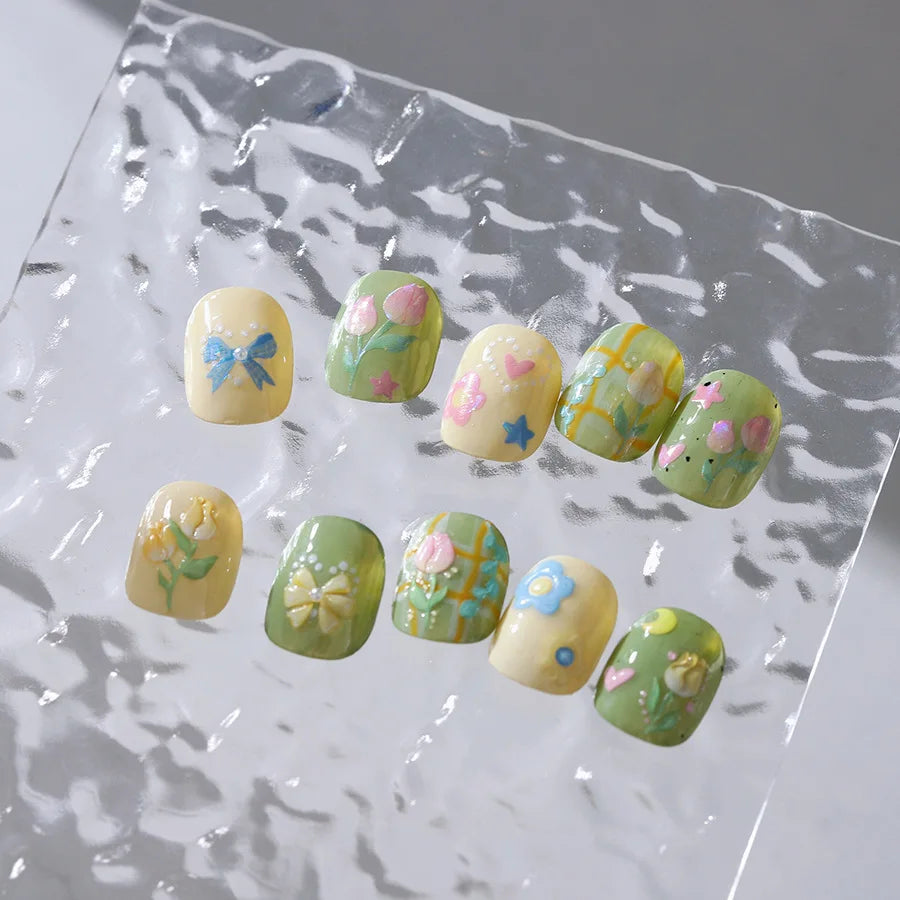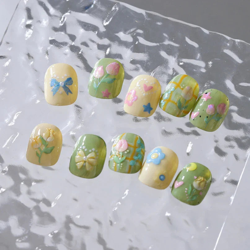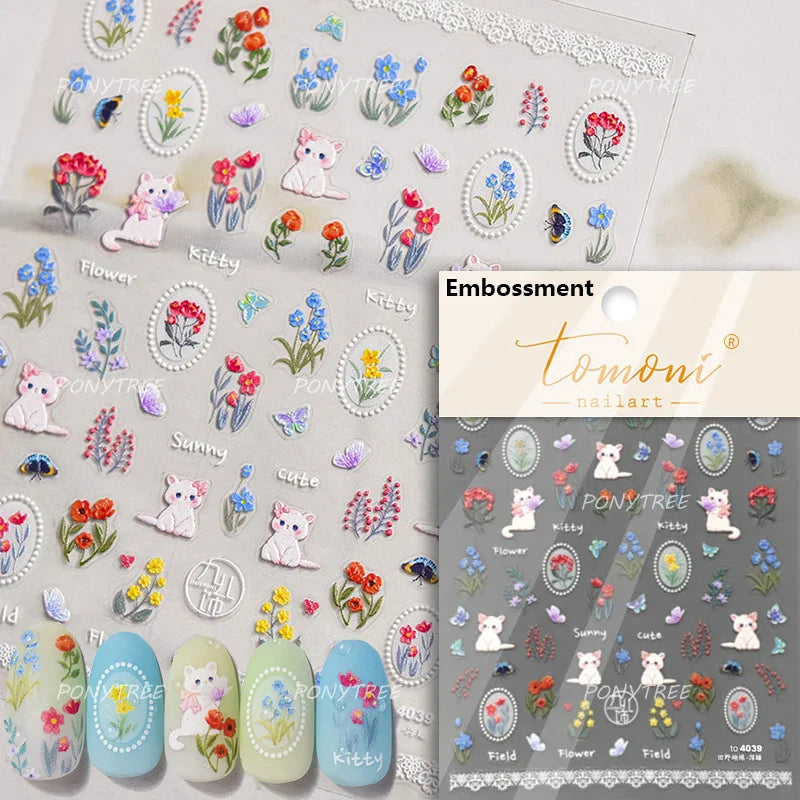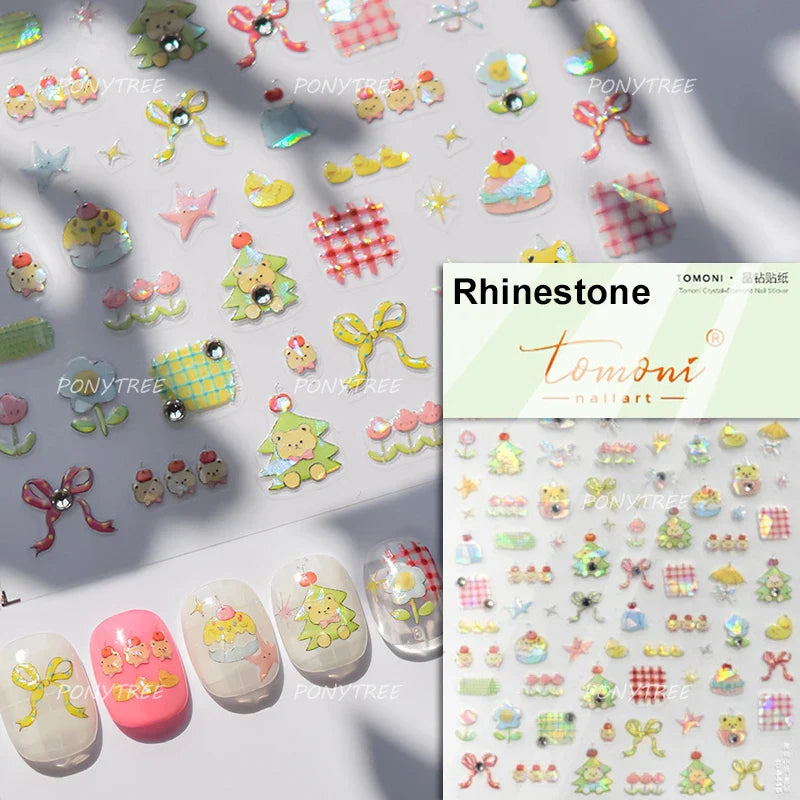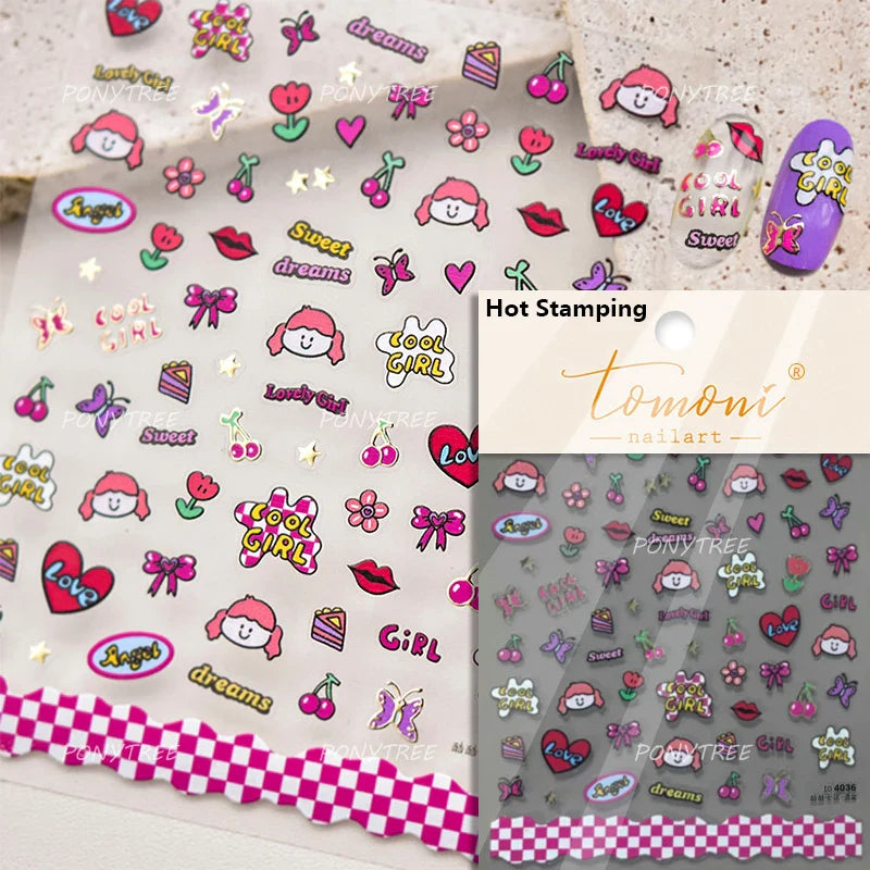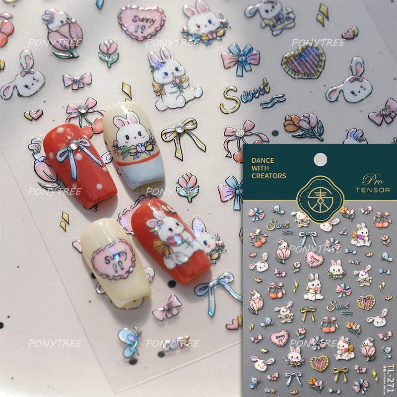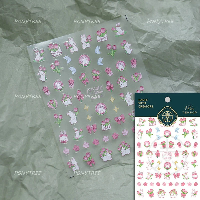 Lovely Bowknot Flower Shiny Star Love Heart Vibrant and Lively Tulip Moon Self Adhesive Nail Art Stickers Relief Manicure Decals (ONLINE ORDER ONLY)