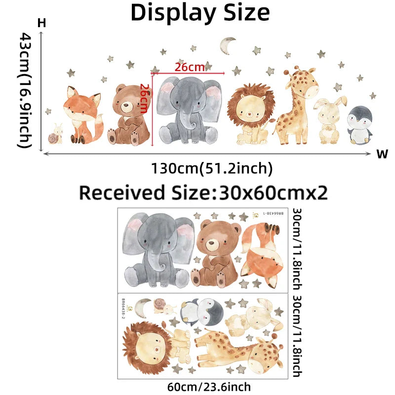 Watercolor Cartoon Animals Wall Stickers (ONLINE ORDER ONLY)