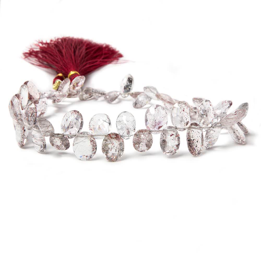 Lepidocrocite and Moss Amethyst top drilled Ovals with Pavilion Faceting are highly brilliant with vitreous luster, show excellent cut and polish in a transparent gemstone, gems show minor to moderate internal features of a mossy characteristics, and the symmetrical Moss Amethyst beads exhibit a very light pinkish purple to medium strongly purple hue with a great make.