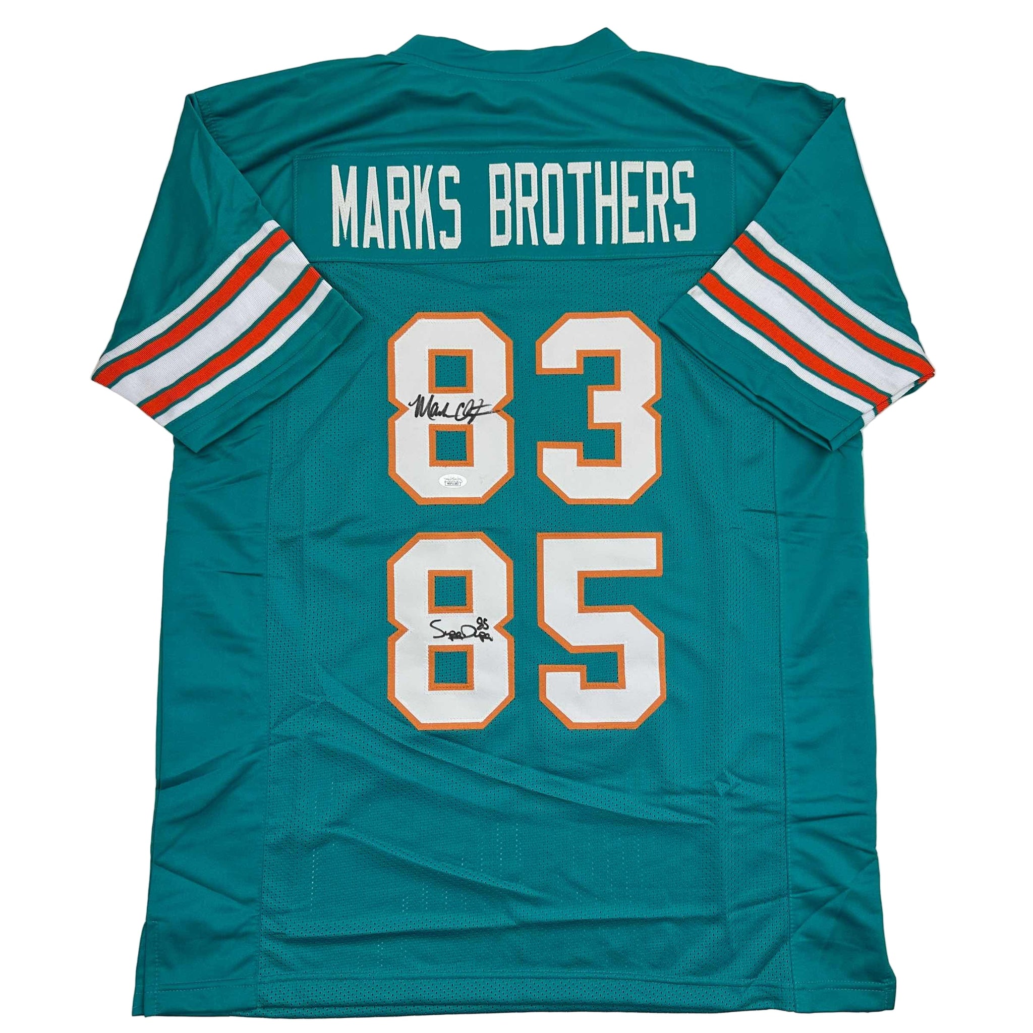 Autographed/Signed Marks Brothers Mark Clayton & Mark Duper Miami Teal Football Jersey JSA COA (ONLINE ORDER ONLY)