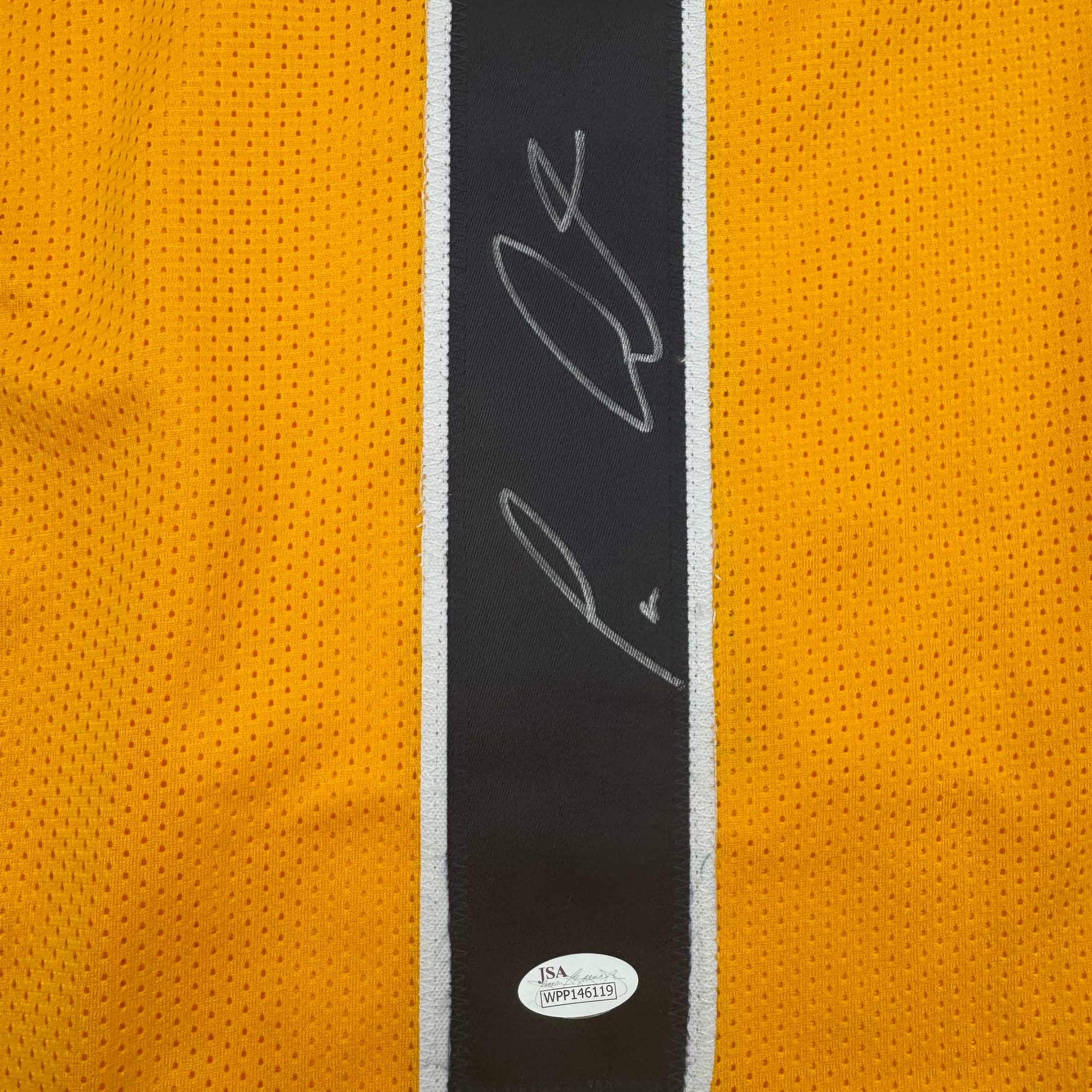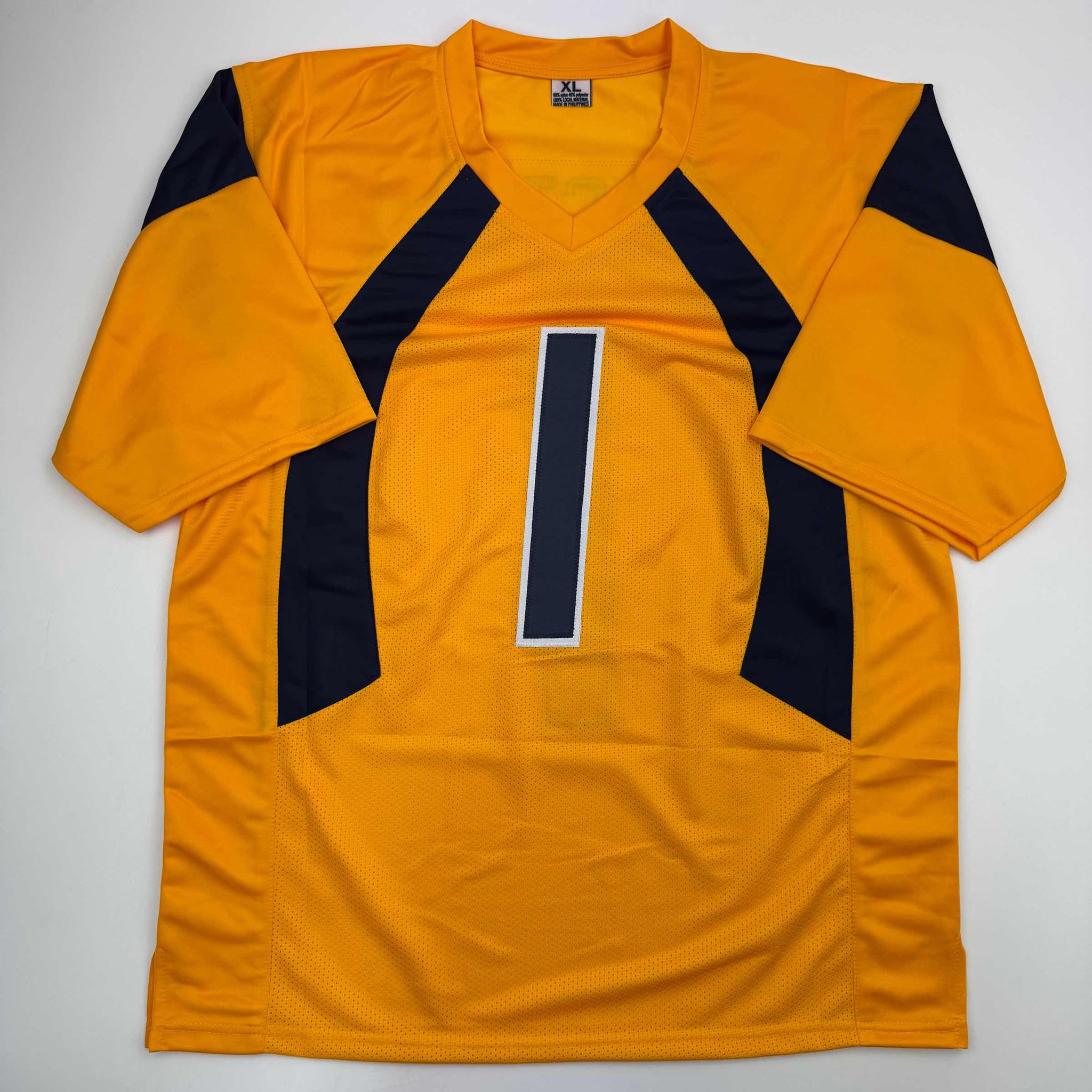 Jersey has no brand names or logos. This is a custom jersey and was not manufactured by or in any manner associated with any professional sports league or manufacturer. This custom jersey carries no professional sports league designation. The item is intended to be an autographed collectible. The custom jersey displays the name and number of the player. This item in no way is affiliated with or connected to any professional sports organization. Size is XL.