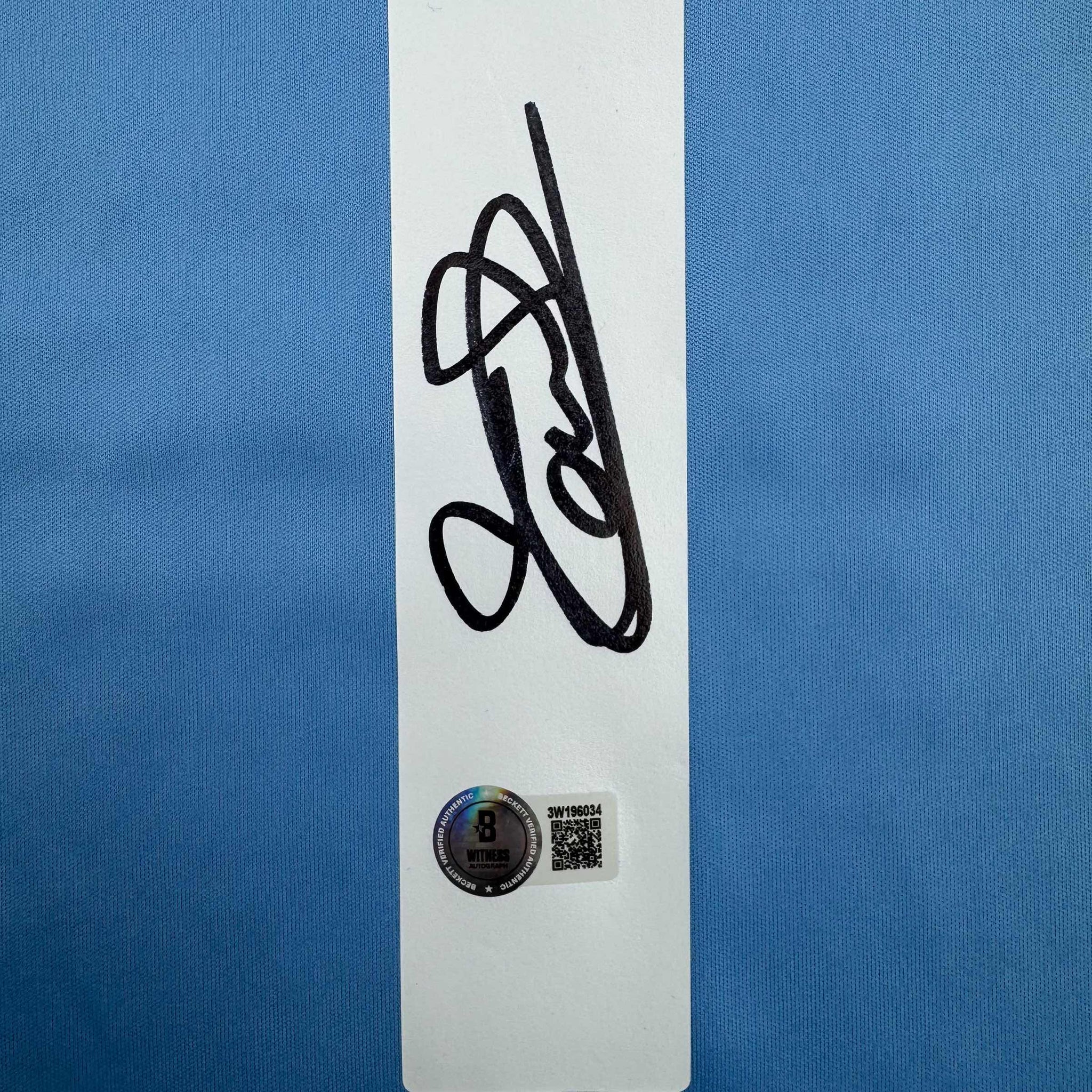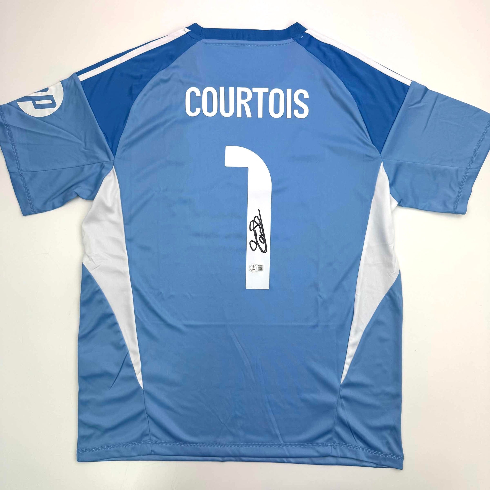 Autographed/Signed Thibaut Courtois Real Madrid Blue Soccer Jersey Beckett BAS COA (ONLINE ORDER ONLY)