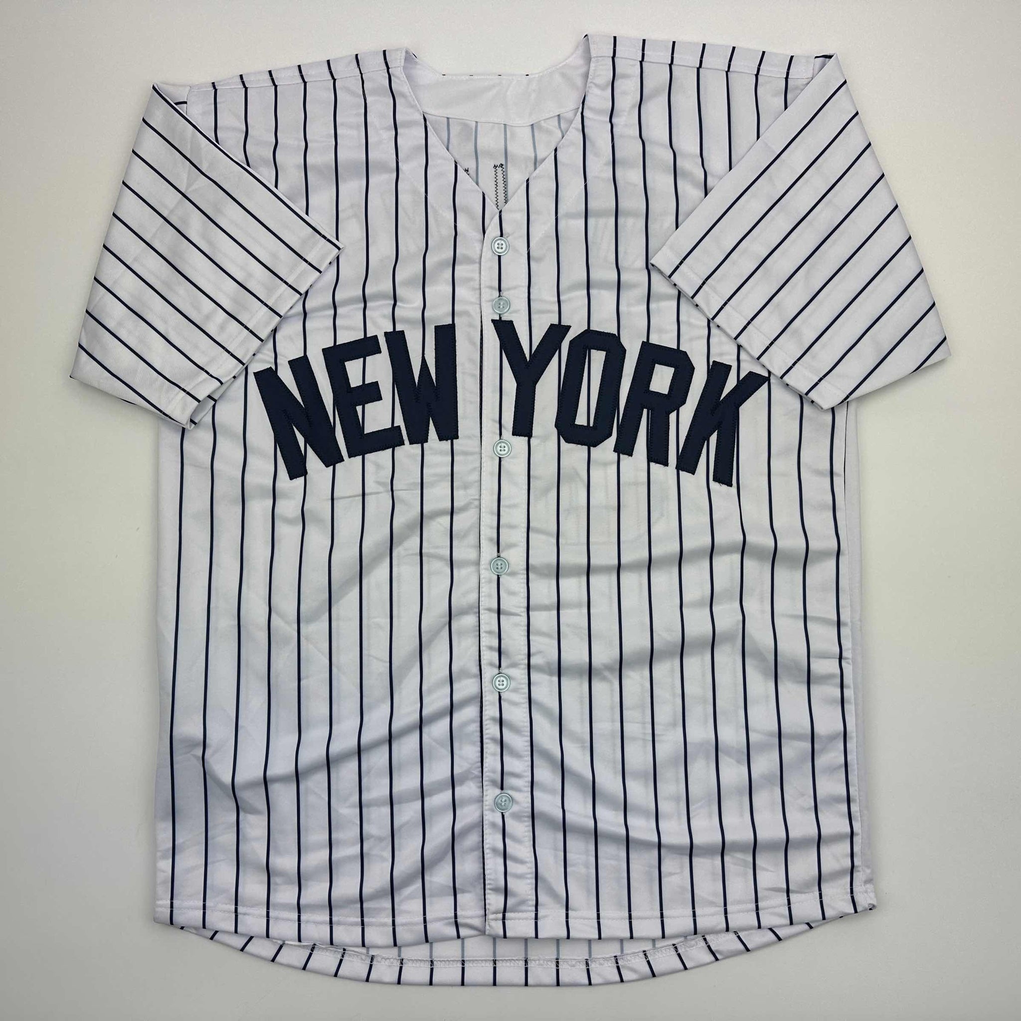 Facsimile Autographed Devin Williams New York Pinstripe Reprint Laser Auto Baseball Jersey Size Men's XL (ONLINE ORDER ONLY)