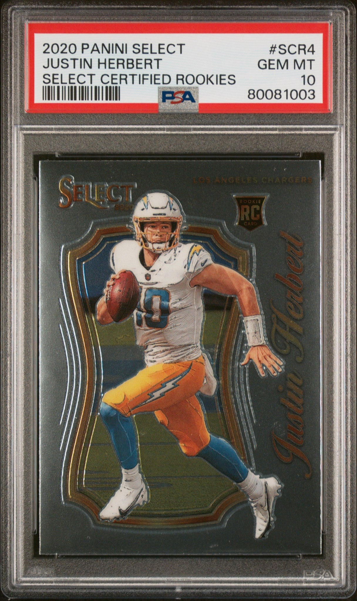 Graded 2020 Panini Select Justin Herbert #SCR4 Select Certified Rookies Rookie RC Football Card PSA 10 Gem Mint (ONLINE ORDER ONLY)
