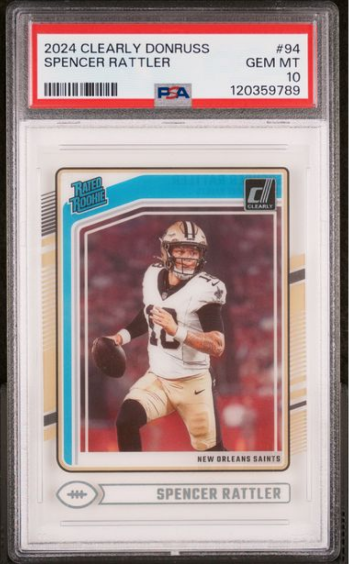 Graded 2024 Panini Clearly Donruss Spencer Rattler #94 Rookie RC Football Card PSA 10 Gem Mint (ONLINE ORDER ONLY)