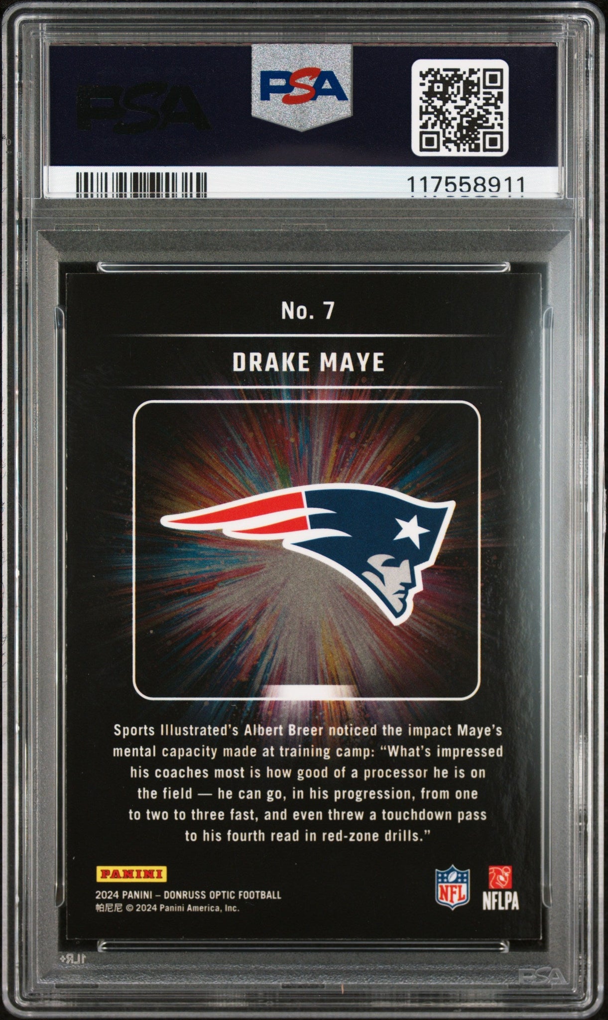 Graded 2024 Panini Donruss Optic Drake Maye #7 Light It Up Rookie RC Football Card PSA 10 Gem Mint (ONLINE ORDER ONLY)