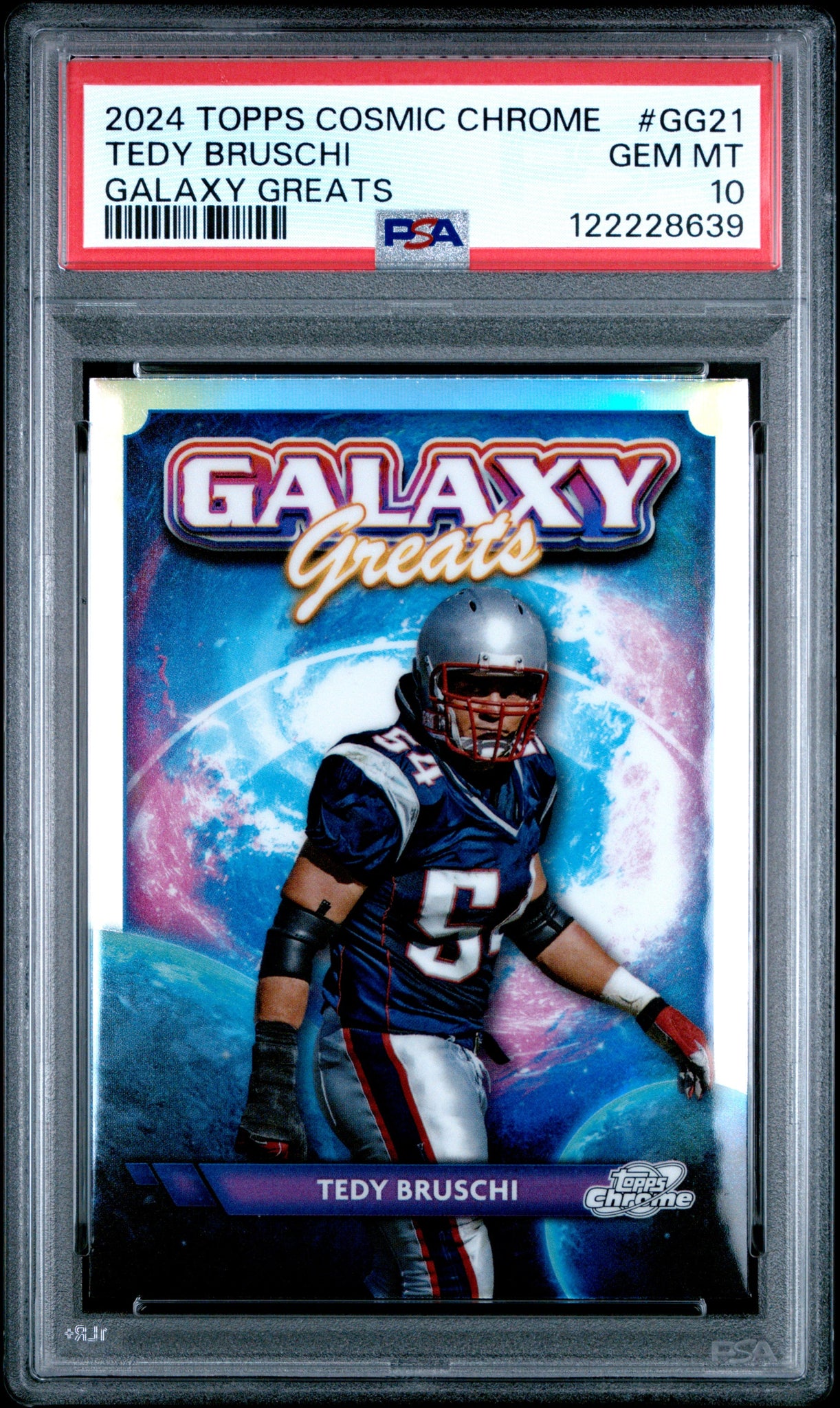 Graded 2024 Topps Cosmic Chrome Tedy Bruschi #GG21 Galaxy Greats Football Card PSA 10 Gem Mint (ONLINE ORDER ONLY)