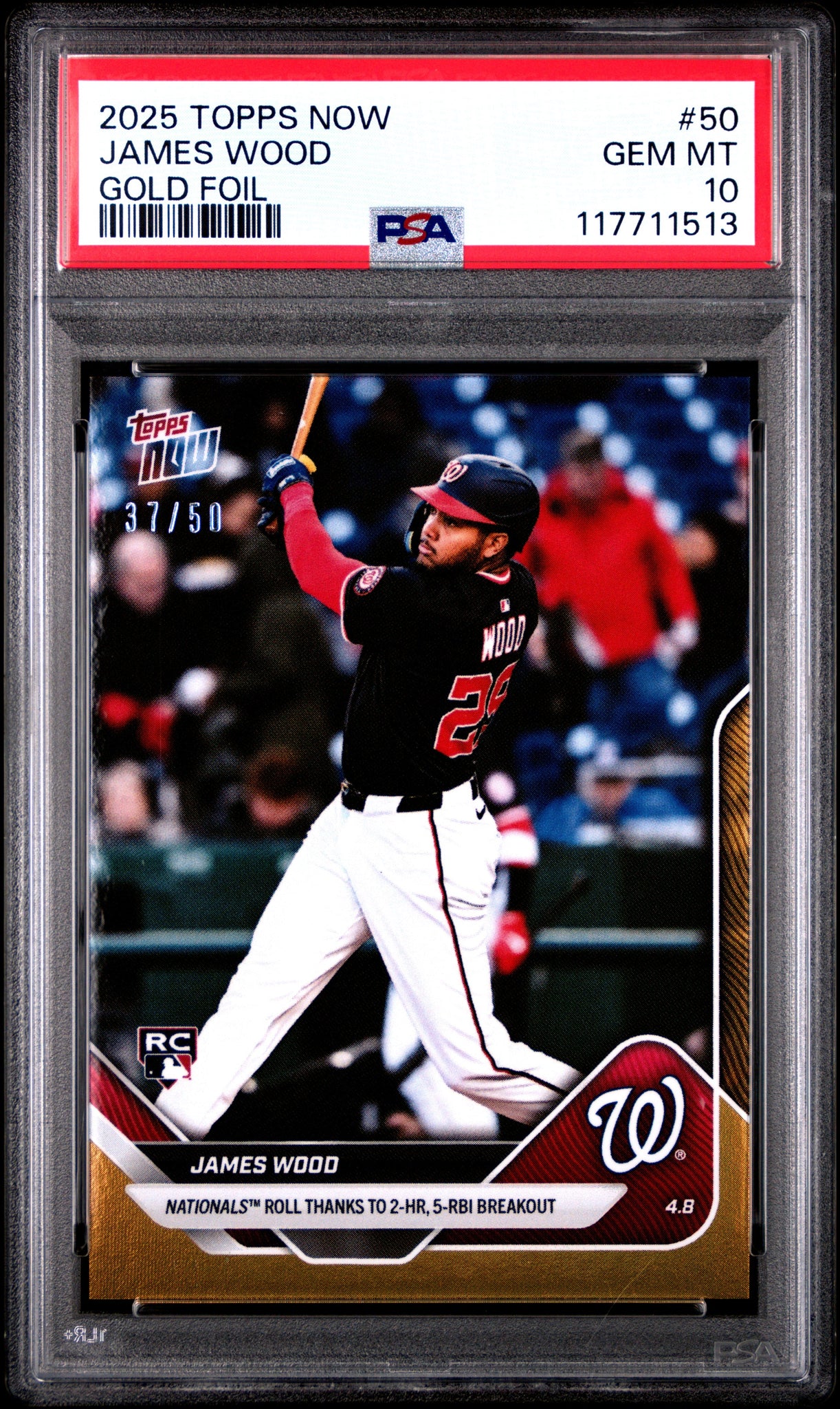 Graded 2025 Topps Now James Wood #50 Gold Foil /50 Rookie RC Baseball Card PSA 10 Gem Mint (ONLINE ORDER ONLY)